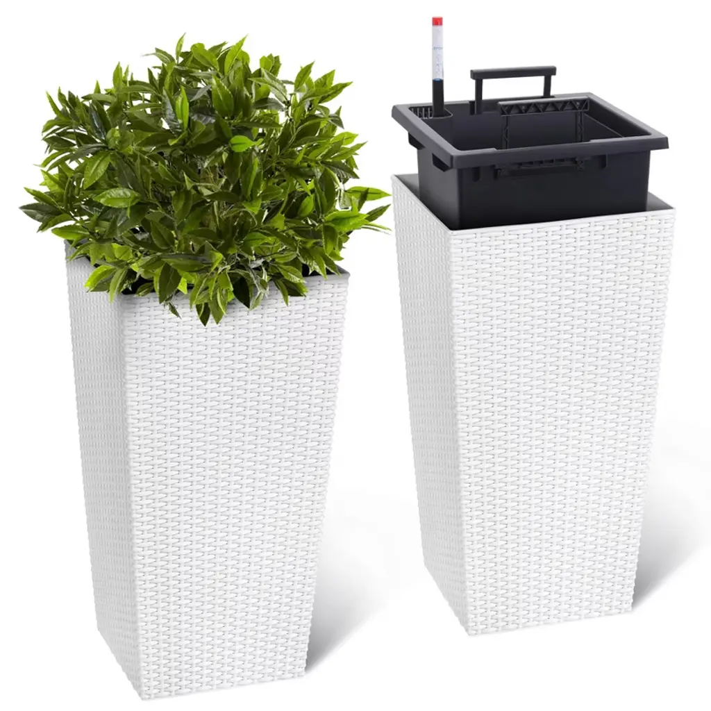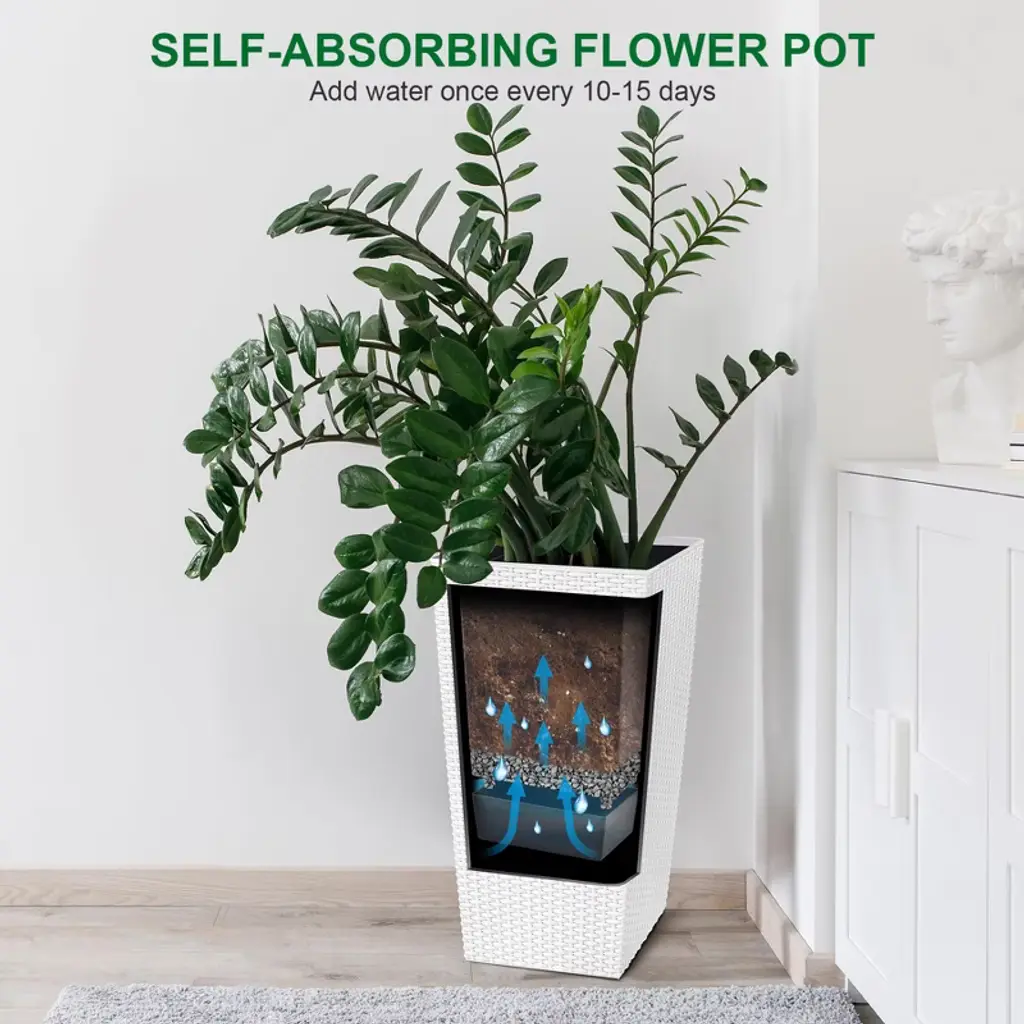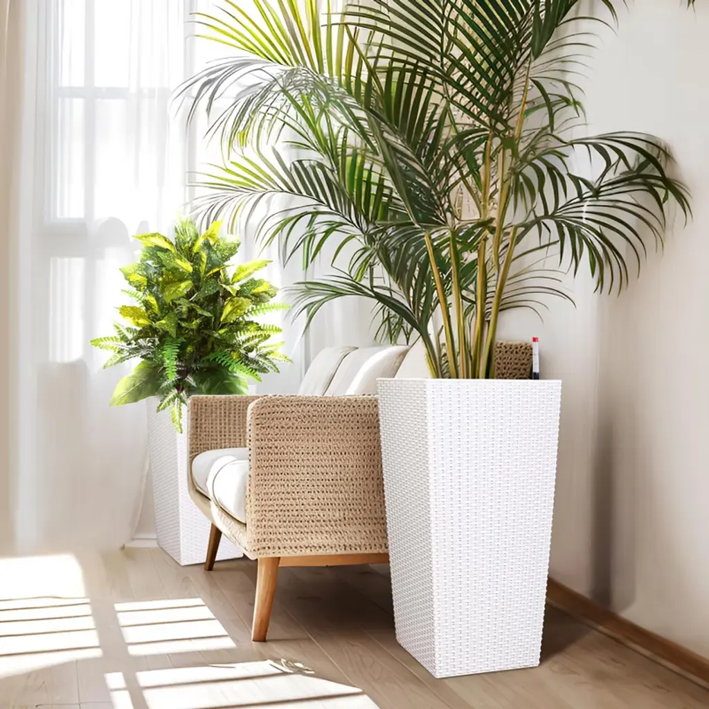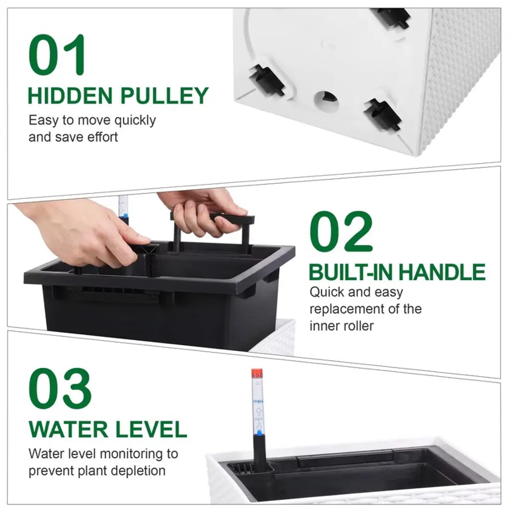 Self-Watering Planters: Each tall planter features built-in drainage holes and a water reservoir, which promotes proper drainage and reduces the risk of root rot. When the water level gets low, the extra water in the reservoir can ensure your plants stay hydrated with minimal effort