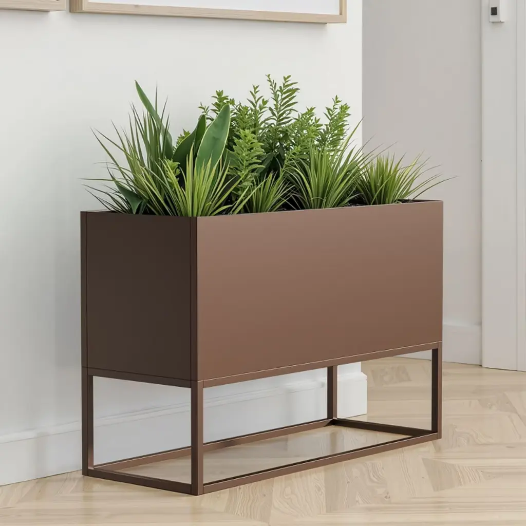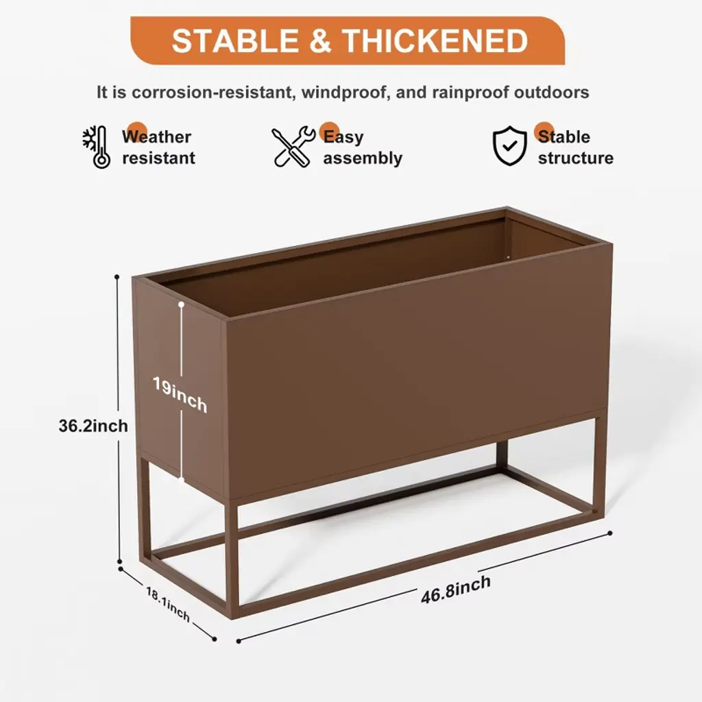Okak 47 Inch Metal Rectangular Planter With Shelves Sturdy Indoor/outdoor Pot For Flowers, Shrubs, Drainage Holes,brown
