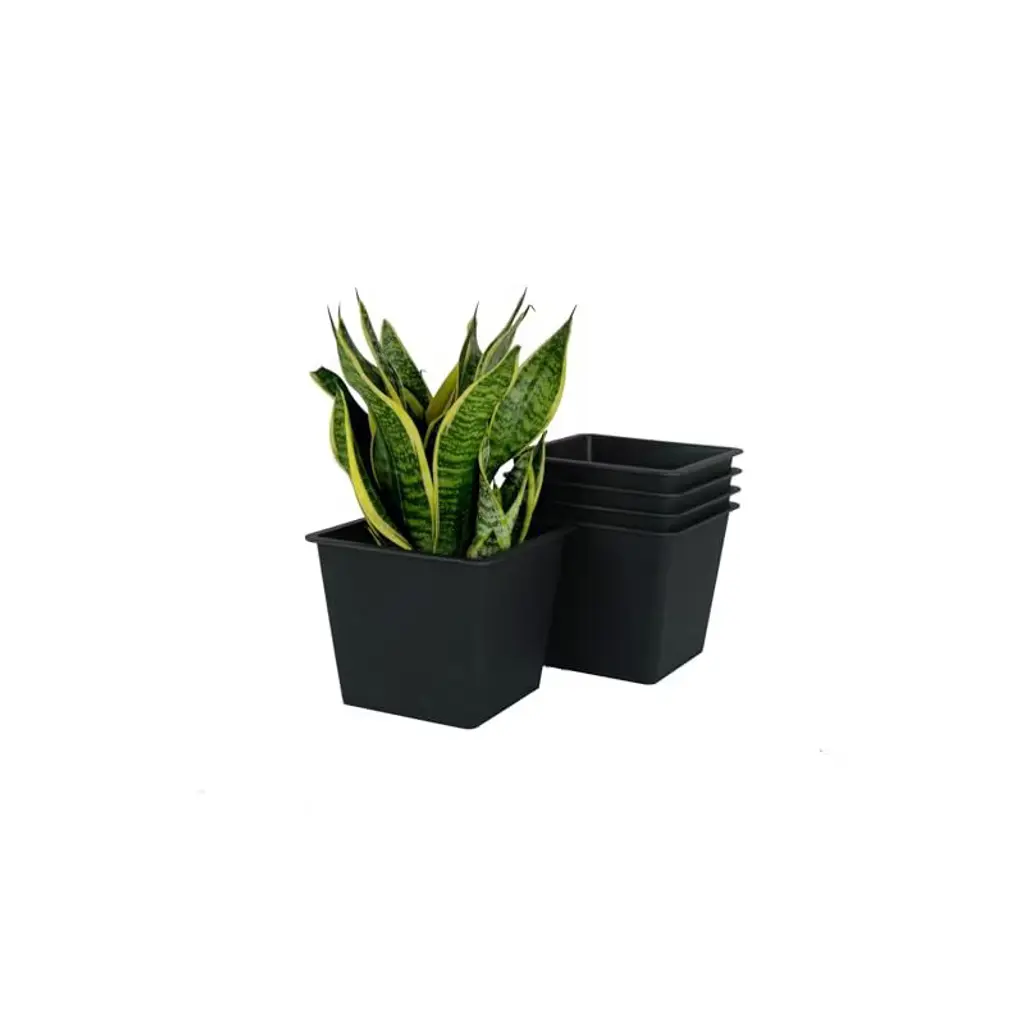 Okak 5-pack Square Plastic Plant Pots With Drainage Multi Sizes (6.3 Inch) For Succulents, Seed Starting, Herbs, Reusable Nursery Planter, Black