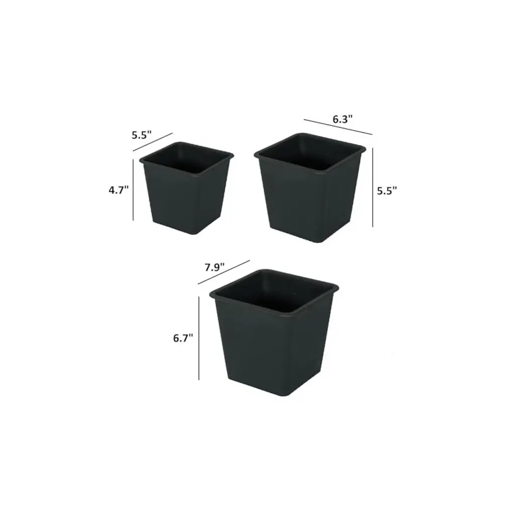 Okak 6.3" Square Plastic Plant Pots With Drainage 5-pack, Multi Sizes For Succulents/seed Starting/herbs, Reusable Nursery Planter, Black