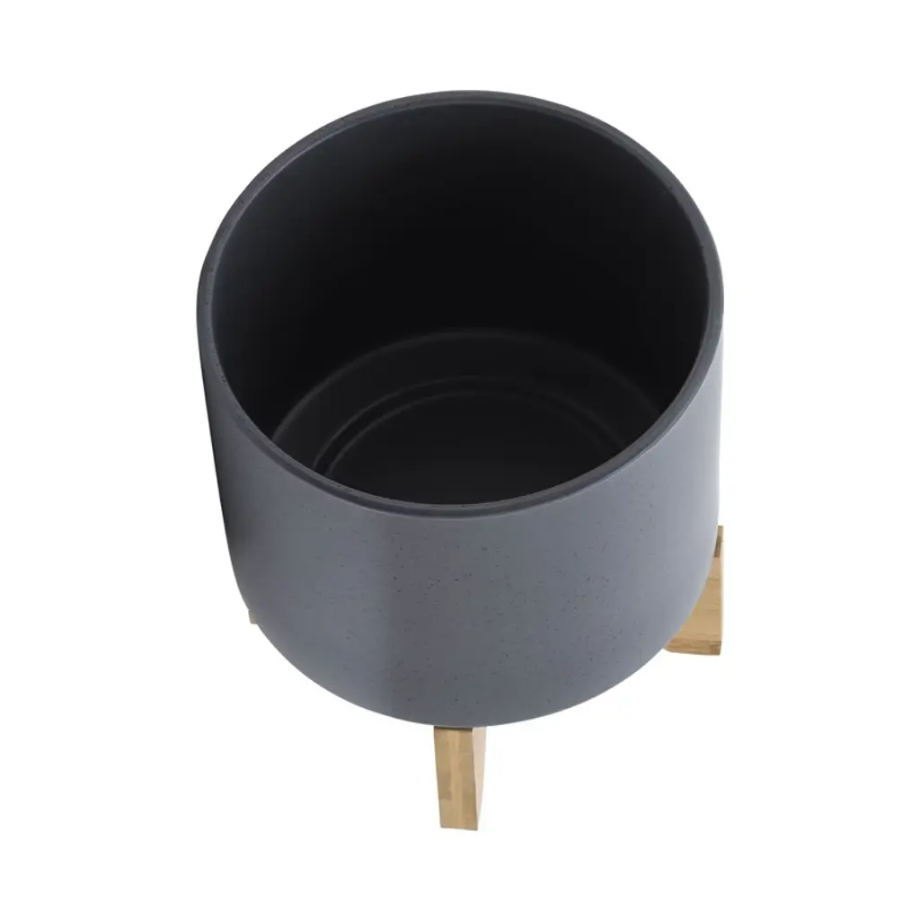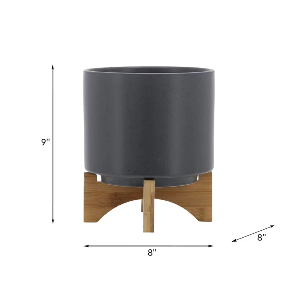 Okak Ceramic Pots With Wooden Base And Drainage Hole, Plants Planter For Flowers, Vegetables, Herbs, 8"x 8"x 9", Gray