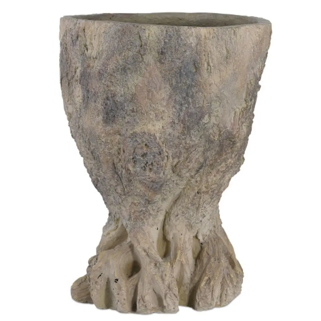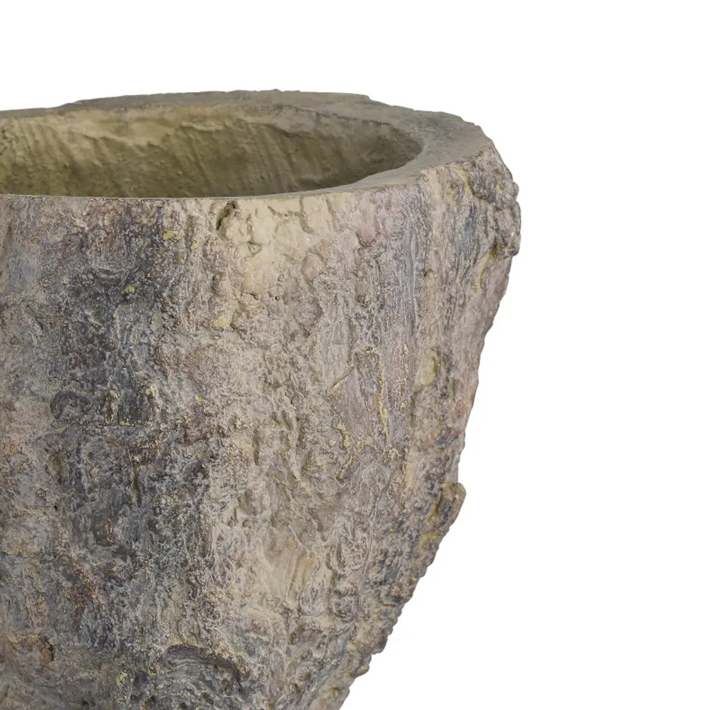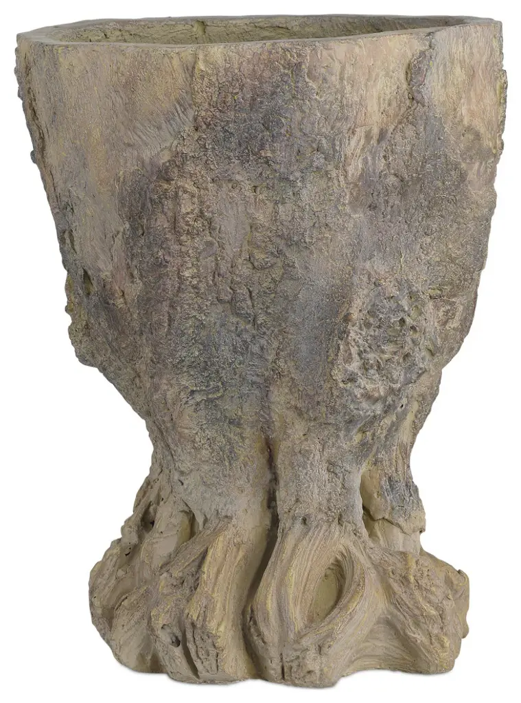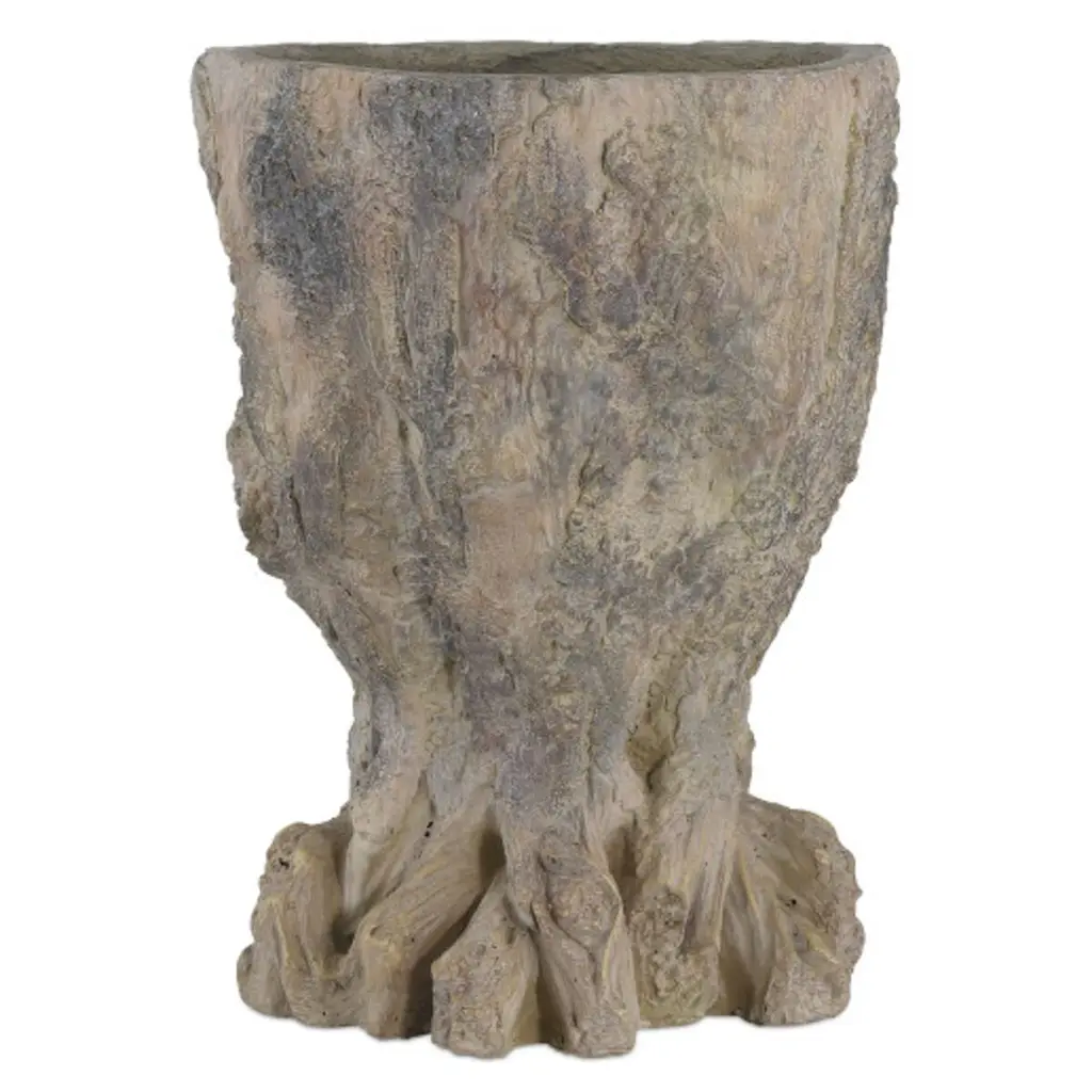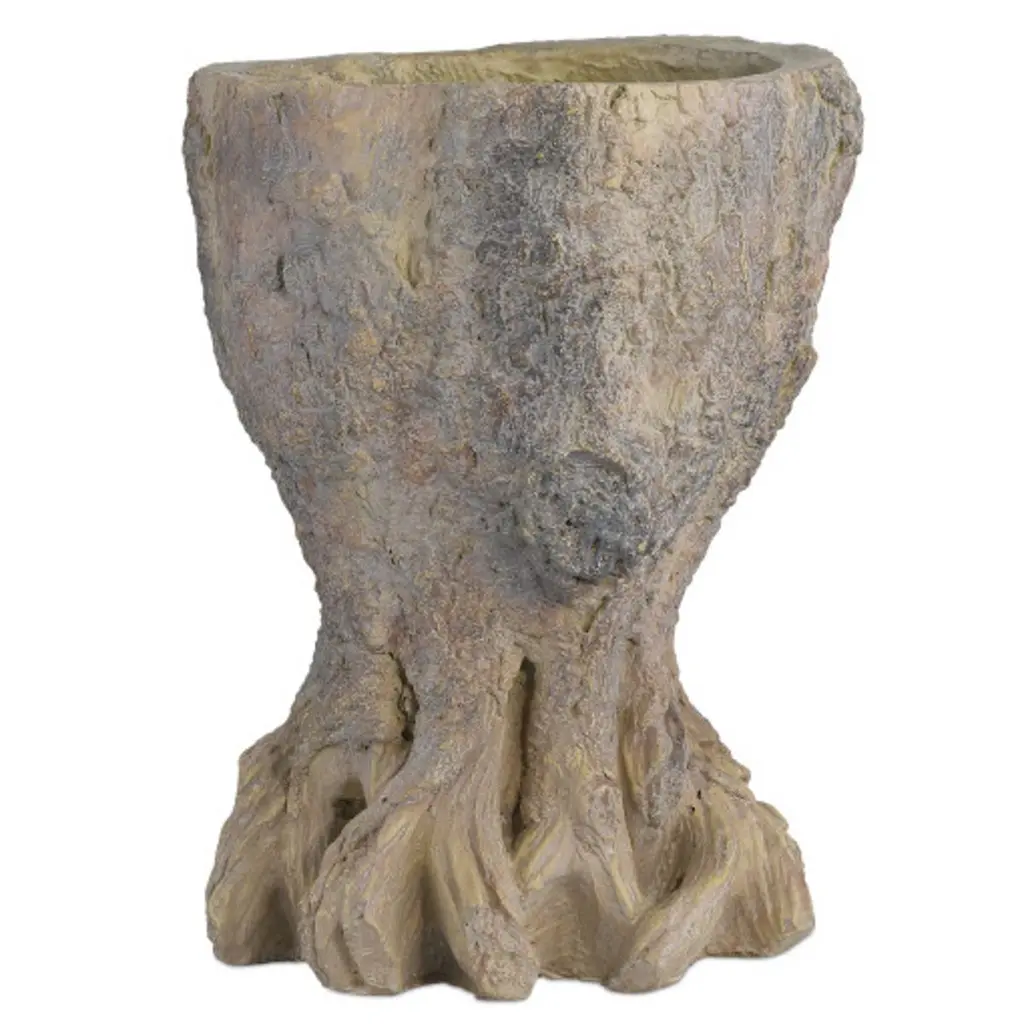 In the tradition of faux bois, the Old Growth Planter is incredibly lifelike. Crafted from fiber cement in a dappled finish, the stump-shaped planter looks aged like an antique would had it been ornamenting a garden for decades. The way the gnarled roots culminate at the bottom is particularly convincing. This plant pot has a drain hole.