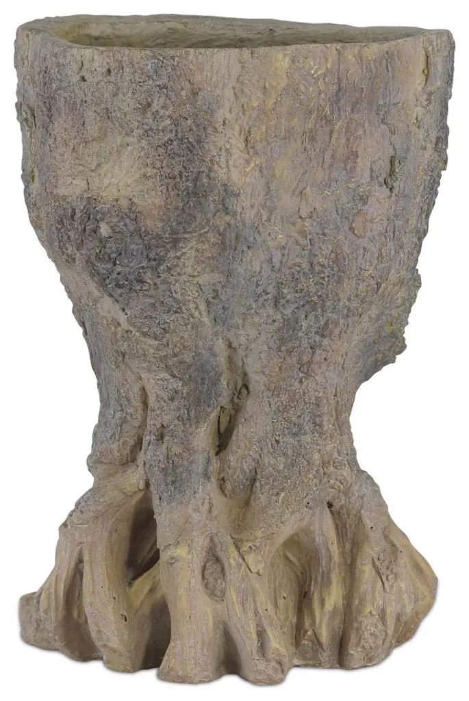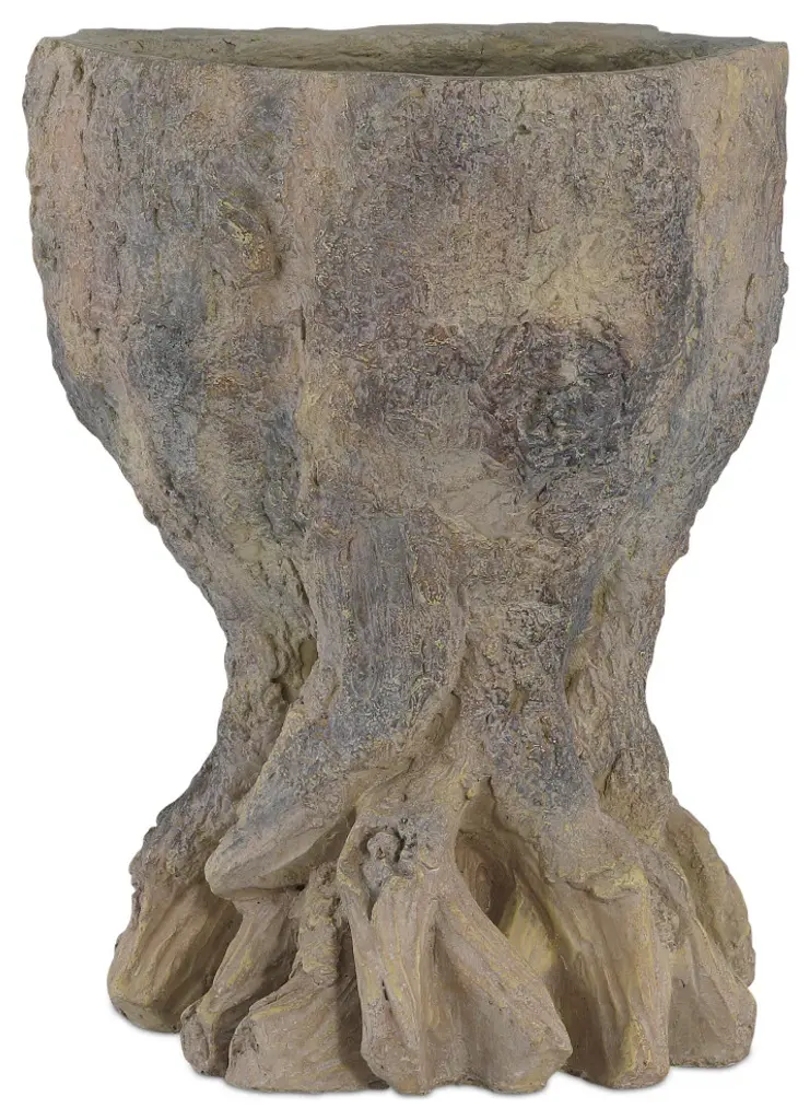 In the tradition of faux bois, the Old Growth Small Planter is incredibly lifelike. Crafted from fiber cement in a dappled finish, the stump-shaped brown planter looks aged like an antique would had it been ornamenting a garden for decades. The way the gnarled roots culminate at the bottom is particularly convincing. This plant pot has a drain hole.