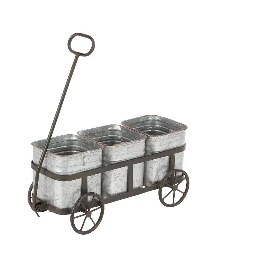 A decorative garden piece that fits an Old English or traditional landscape design. Designed with felt or rubber stoppers at the base that prevent scratching furniture and table tops, as well as sliding around. This item ships in 1 carton. Please note that this item is for decorative use only. Easy to place and decorate on patios and garden areas. Suitable for indoor and outdoor use. This item ships fully assembled in one piece. Maximum weight limit is 5 lbs. Planters do not have drainage holes but they are not watertight. This is a single silver colored plant pot. Farmhouse style.