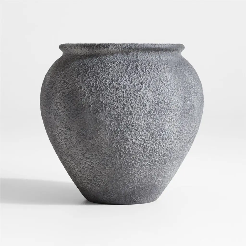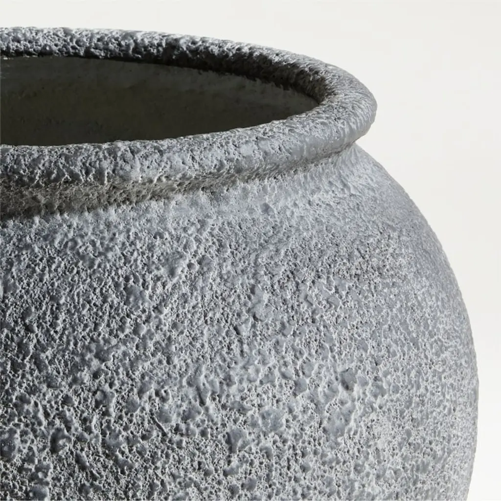 Inspired by our bestselling Ophelia vase collection, the graceful curves of this medium planter swell from the base to shape a classic urn silhouette. The stippled black finish mimics the look of ceramic, emulating the artisanship and fascinating texture of our handcrafted vases. A lightweight yet durable blend of sand, cement and fiber shapes the frost-resistant vessel, making this dramatic planter ideal for your porch, stoop or patio.