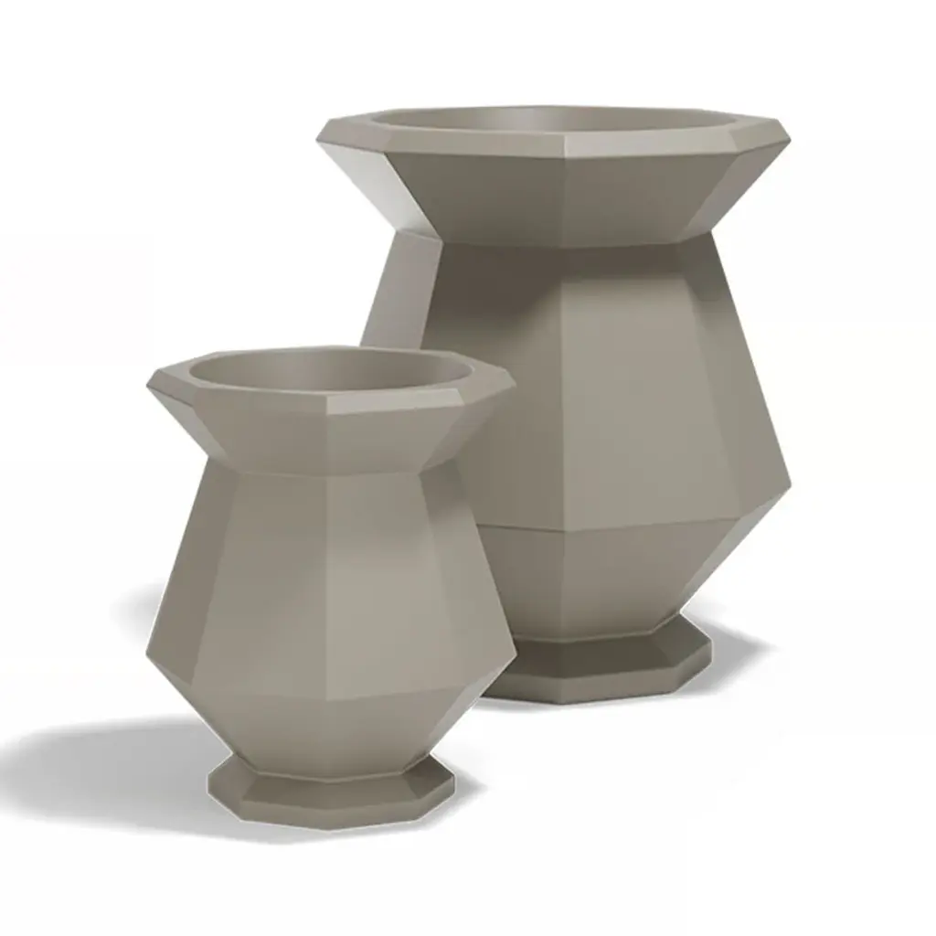 Indulge in the exquisite simplicity of the Origami Kashi Planter from Vondom. Inspired by the ancient Japanese art of paper folding, this planter brings a sophisticated touch to any outdoor space. The faceted design is not only visually captivating, but also evokes a sensory experience with its interplay of light and shadow. Fill with your favorite plants or flowers for a chic display indoors or out. Highlights