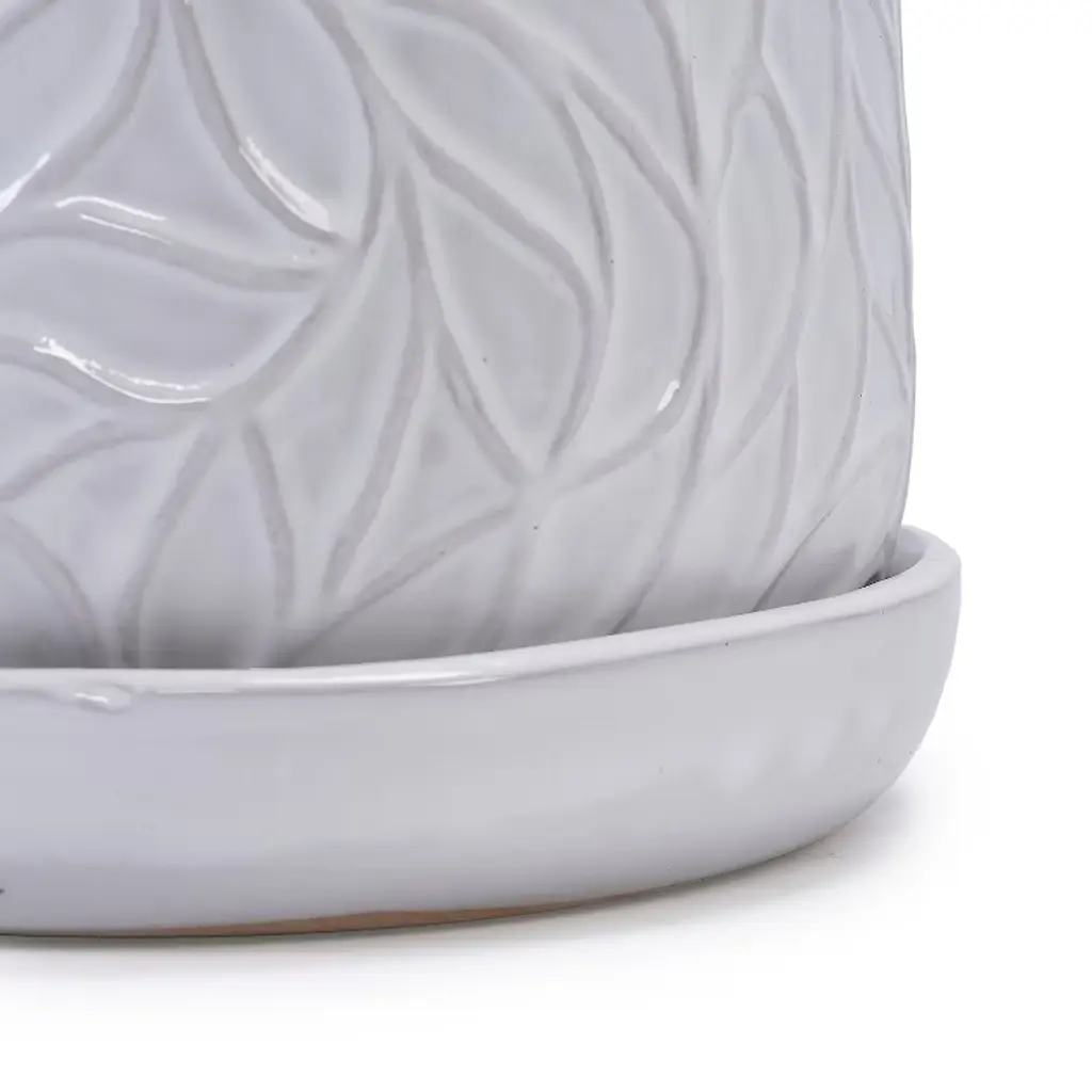 Orrd 2-pack Ceramic Planters With Embossed Leaf Design | Modern Indoor Outdoor Flower Pots For Garden & Patio,white