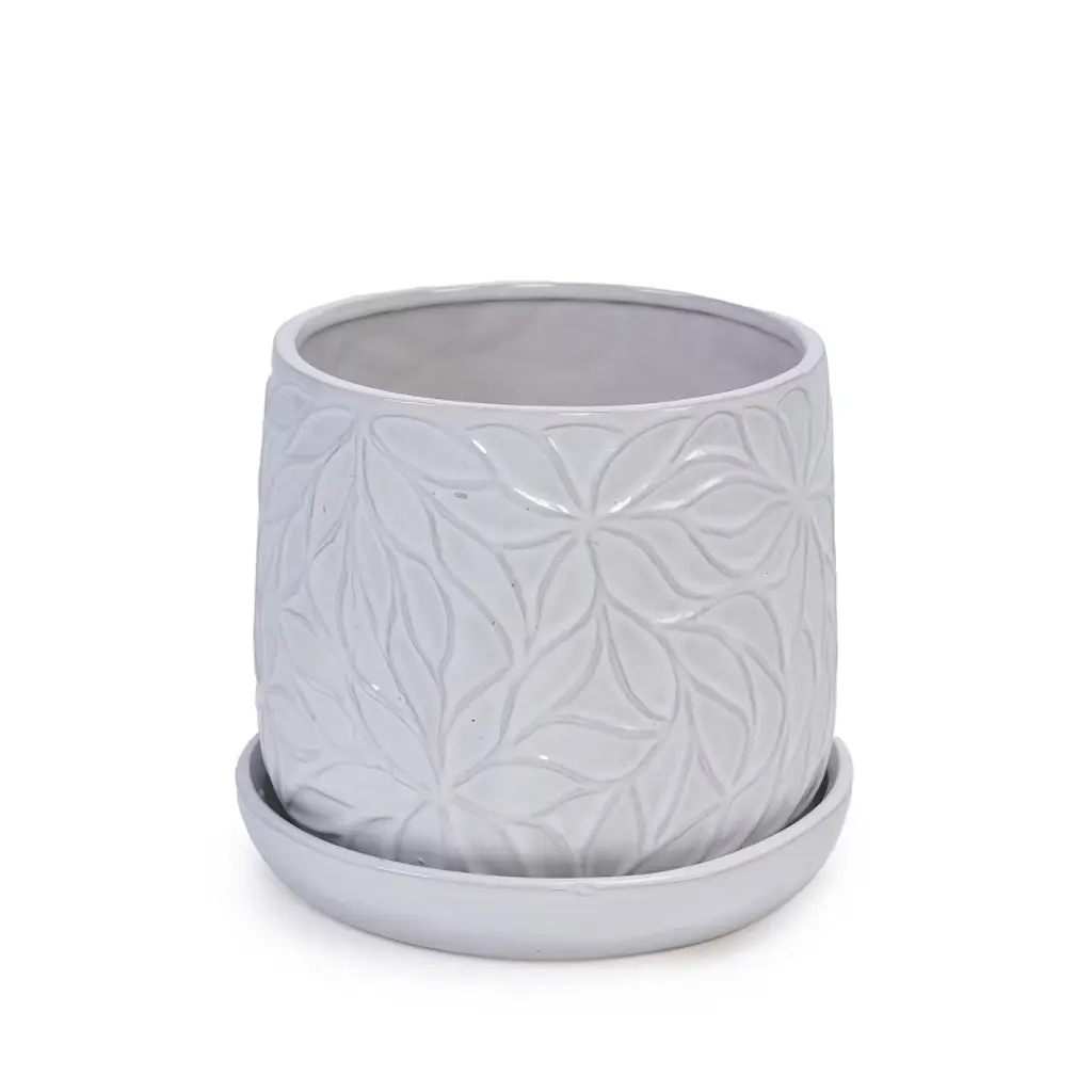 Enhance your plant display! These modern ceramic pots feature elegant embossed leaf designs, drainage holes for healthy plants, and glossy white finishes. Perfect for indoor decor or outdoor patio/garden use. Weather-resistant and stylish—ideal for showcasing your favorite greenery! Set of 2.