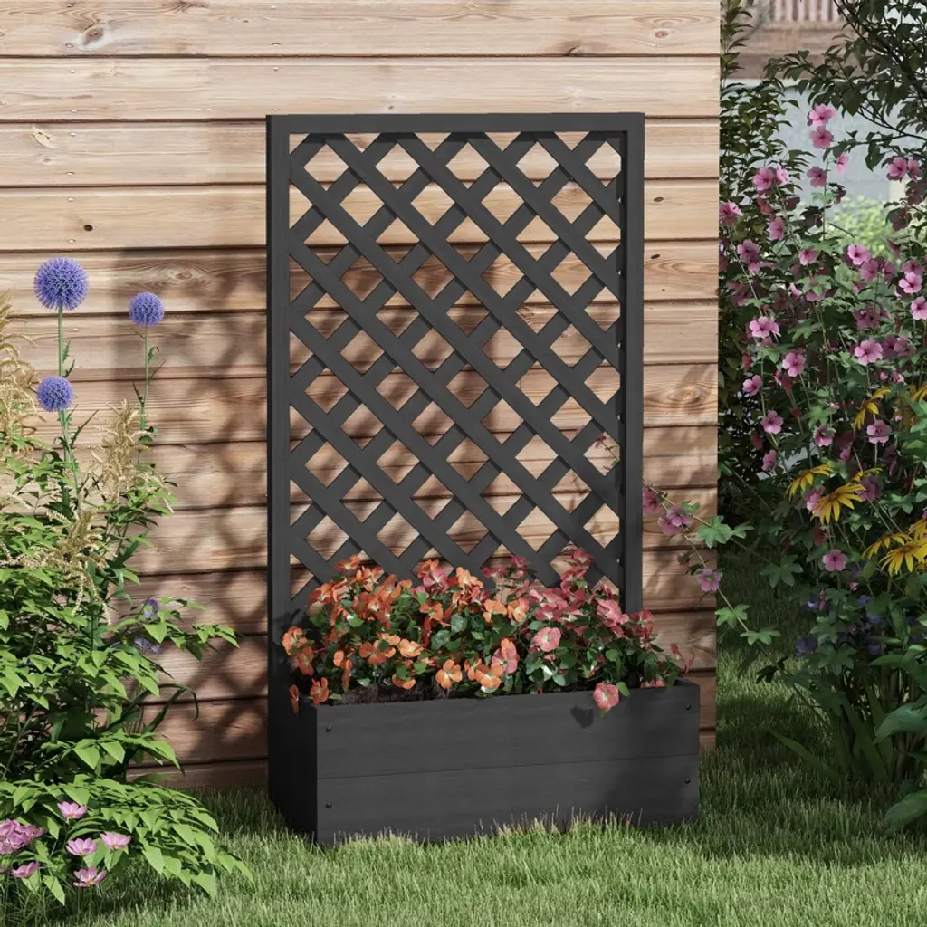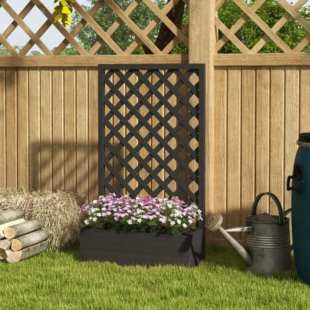 Outsunny Raised Garden Bed W/ Trellis Lattice, Drainage Gap, Freestanding Trellis Planter For Climbing Plants, Vines, Flowers, Black