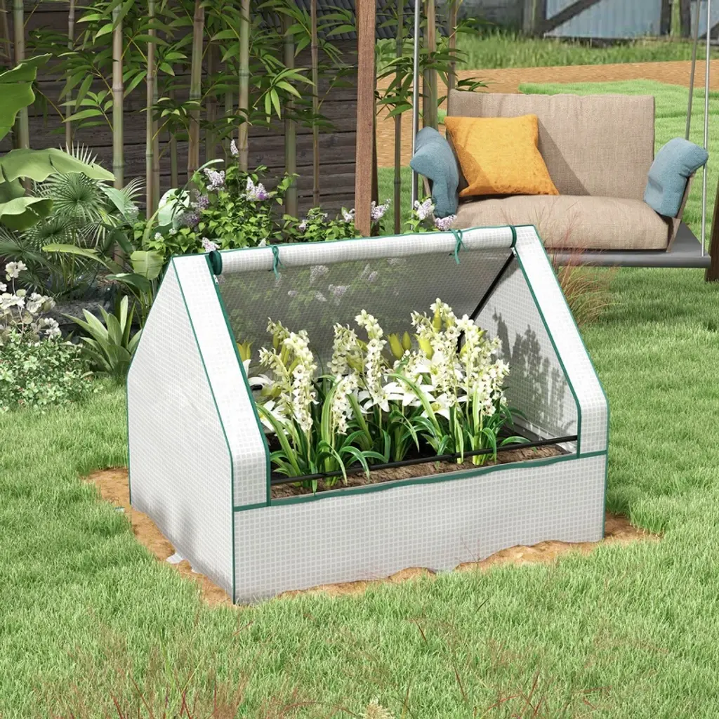 Outsunny Raised Garden Bed With Mini Greenhouse, Outdoor Planter Box, White And Silver