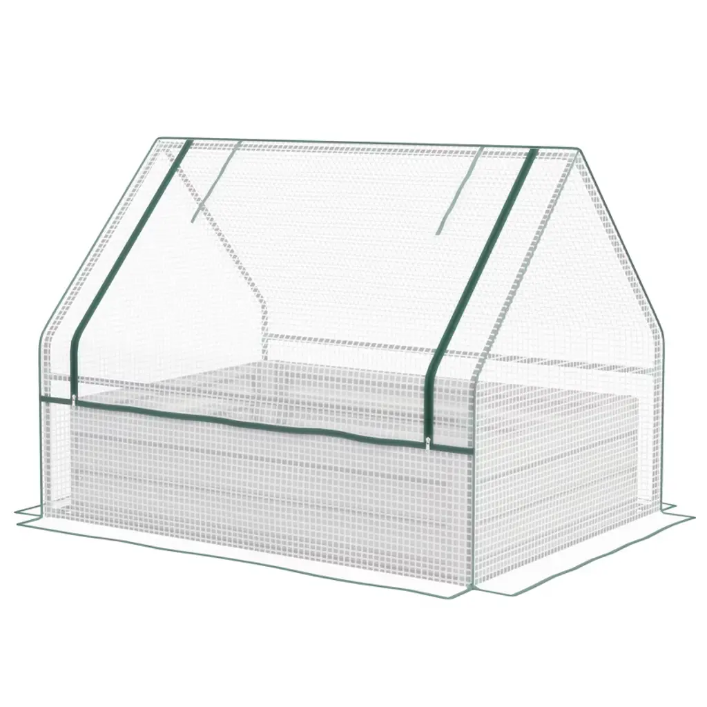 Get twice the growing power with a greenhouse garden bed by Outsunny. Our open-bottom planter accommodates long-rooted vegetables. It prevents oversaturation and can put a garden on asphalt. The mini greenhouse cover protects plants from cold and locks in humidity. Use our raised planter and green house together or separately to spot-fix issues. They're a solution to soil troubles and weeds. Raise your green thumb with an Outsunny greenhouse planter.