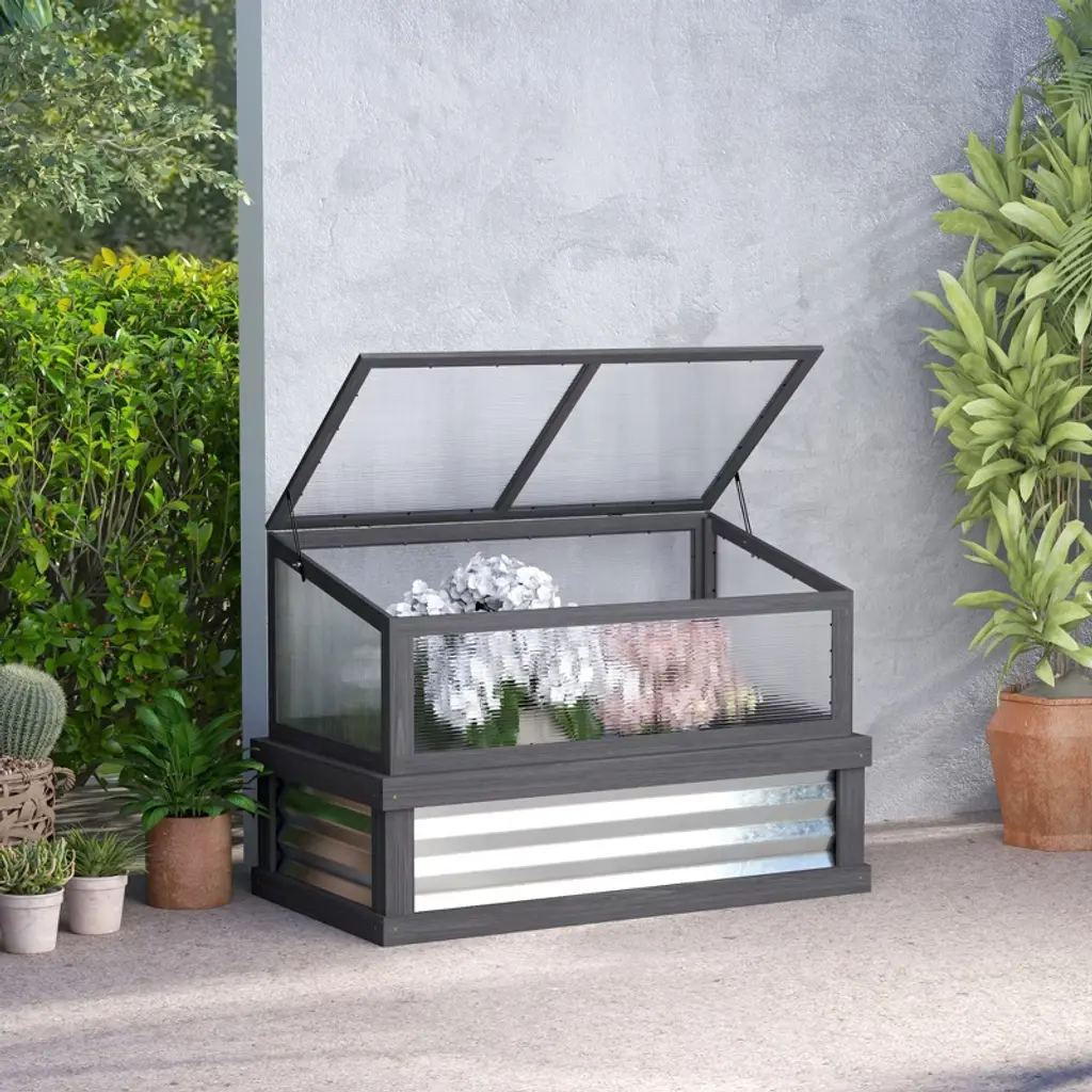 Want to protect your plants all around in a single compact set? Outsunny has a raised garden bed and cold frame greenhouse combo that can be used together or separately as issues occur. Protect plants from cold, wind, rain, weeds, and wild animals. A raised planter gives plants their own space with special soil, and a greenhouse cover can block UV and lock in heat and humidity with a warm, insulated interior. A vent on top gives you total control. Raise your green thumb with Outsunny.
