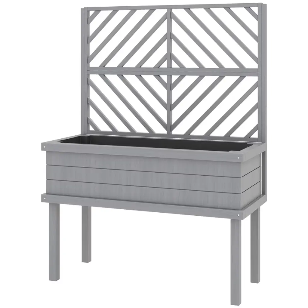 Outsunny Raised Garden Bed With Trellis For Climbing Plants, Wood Planter With Legs, Drainage Holes & Filter, Gray