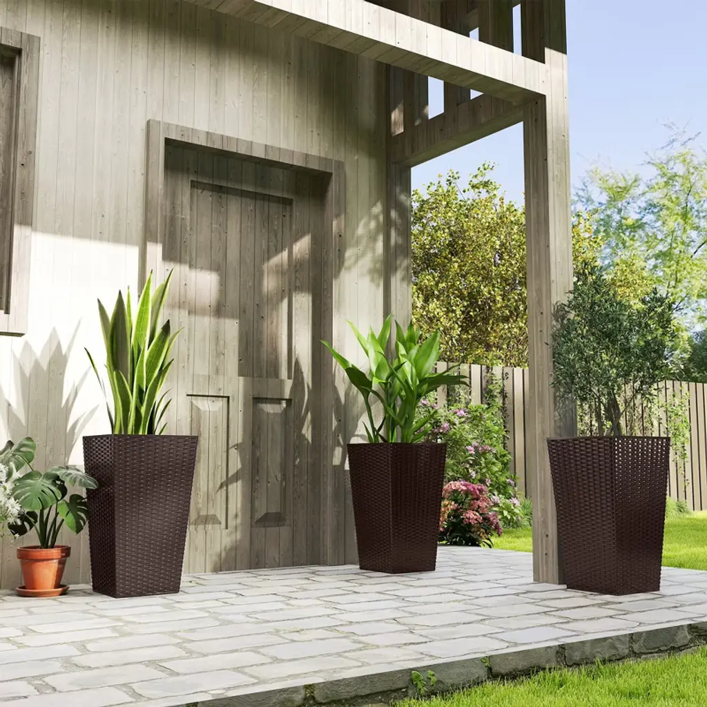 Outsunny Set Of 3 Tall Planters With Drainage Holes, Outdoor & Indoor Flower Pot Set For Front Door, Entryway, Patio And Deck, Brown