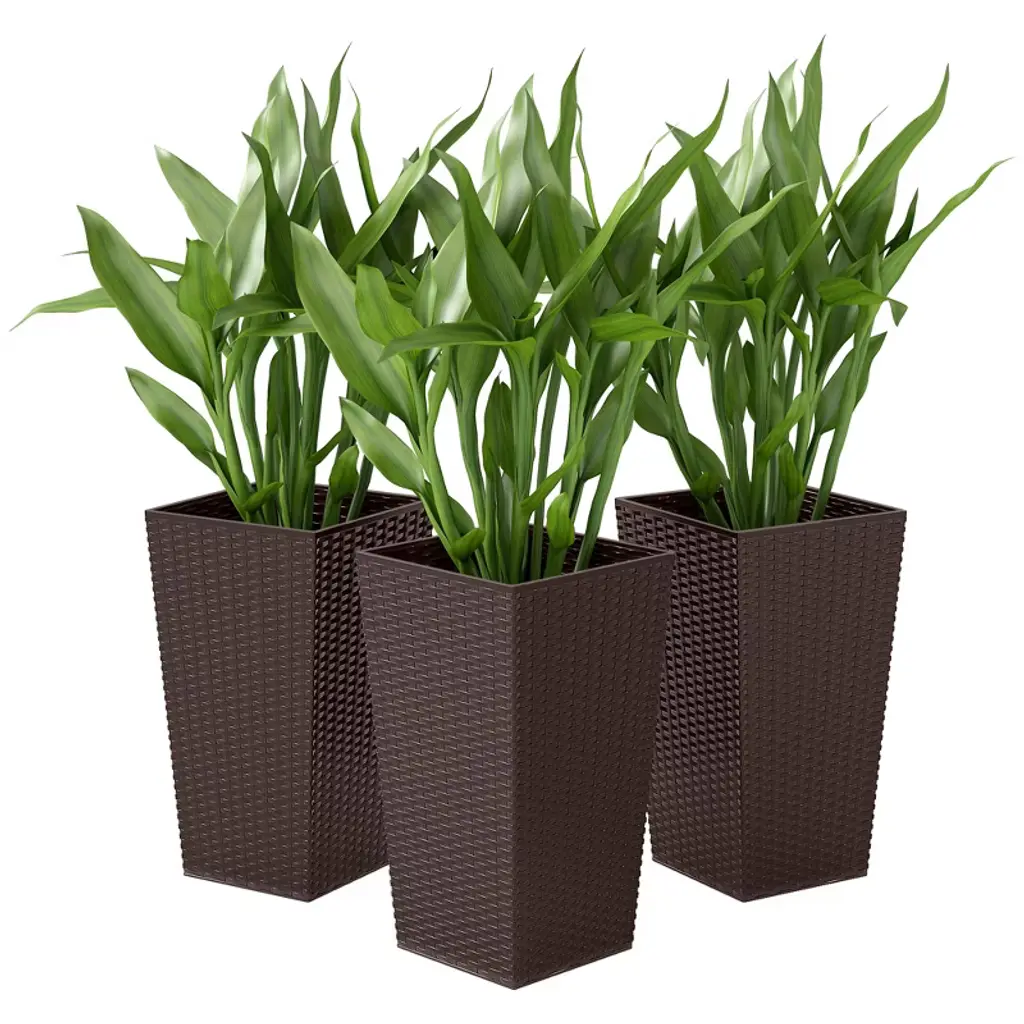 If you're looking for flower pots with a more elegant look than the traditional plastic or clay planters, this three-planter set from Outsunny gives your garden space the classic touch you want. The rattan-style plastic makes it easy to get your plants settled inside, while the hole at the bottom allows for water drainage for plants placed outside. Add some new life to your backyard, living area, or office space with this set of 3 flower boxes from Outsunny.