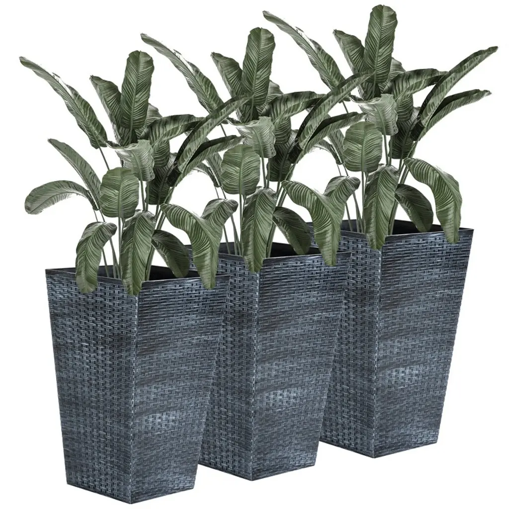 If you're looking for flower pots with a more elegant look than the traditional plastic or clay planters, this three-planter set from Outsunny gives your garden space the classic touch you want. The rattan-style plastic makes it easy to get your plants settled inside, while the hole at the bottom allows for water drainage for plants placed outside. Add some new life to your backyard, living area, or office space with this set of 3 flower boxes from Outsunny.