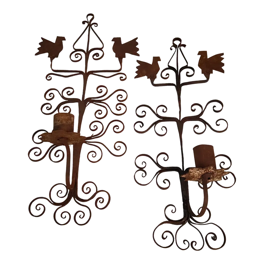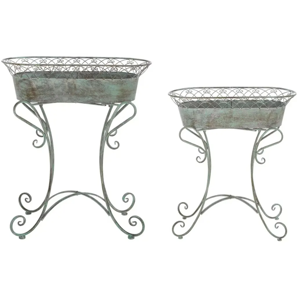 Pair of European Antique wire planters. Measure: 36″Charming pair of wrought iron planters from France. Original wear and patina.
