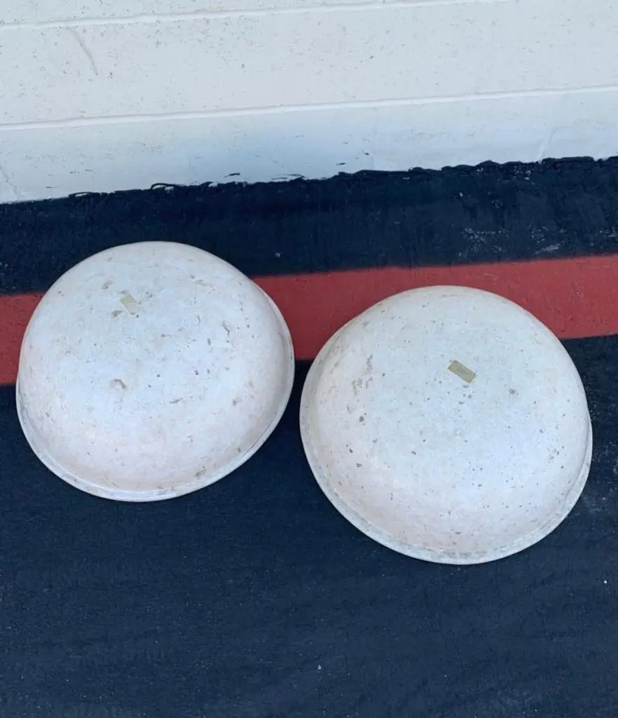 Pair Of Metal Bronze And Travertine Pedestal Planters