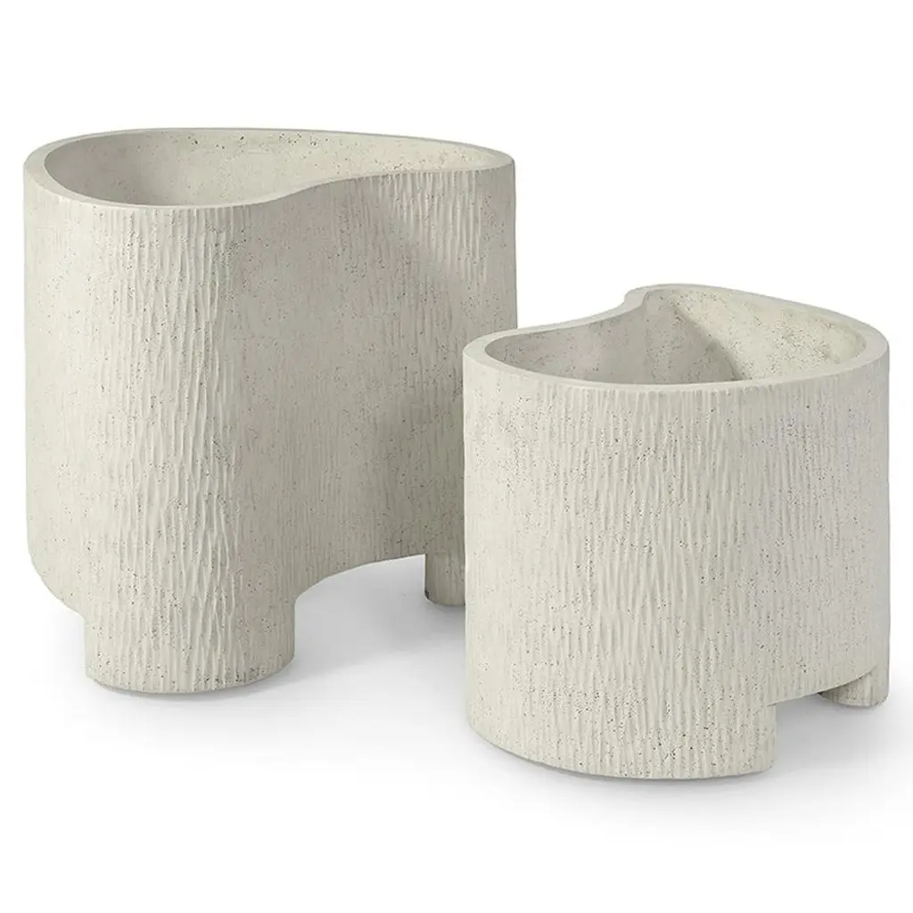 Palecek Nadia Coastal Beach Aged White Textured Stone Planter - Small