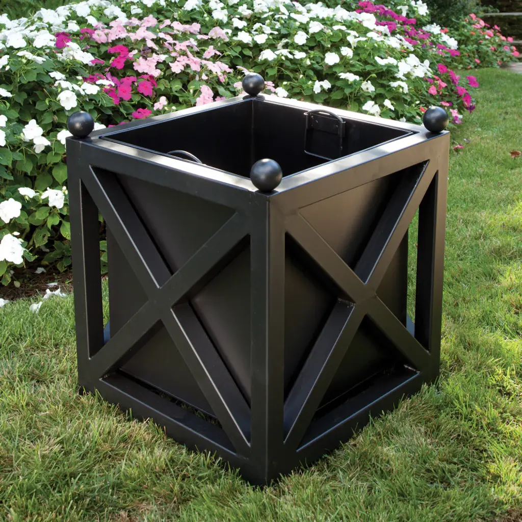 Display flowers and greenery in the classic Paris Planter. Made from galvanized, powder-coated black metal, this planter is sophisticated and durable. Display it in a garden or on a front doorstep as a chic accent piece.