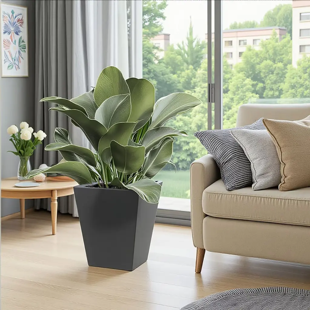 This 18-inch-tall conical flower pot, with its elegant hand-polished gray finish, serves as a versatile focal point to enhance any home or balcony, seamlessly blending into various indoor and outdoor styles. Its spacious capacity provides ample growing space for small shrubs to medium-sized trees, and it features drainage holes with silicone plugs for intelligent water control, effectively preventing waterlogging and root rot, ensuring healthy plant root systems. The conical structure not only adds a unique aesthetic appeal but also creates an ideal environment for roots to grow freely, promoting robust plant growth and lush foliage wherever it is placed.