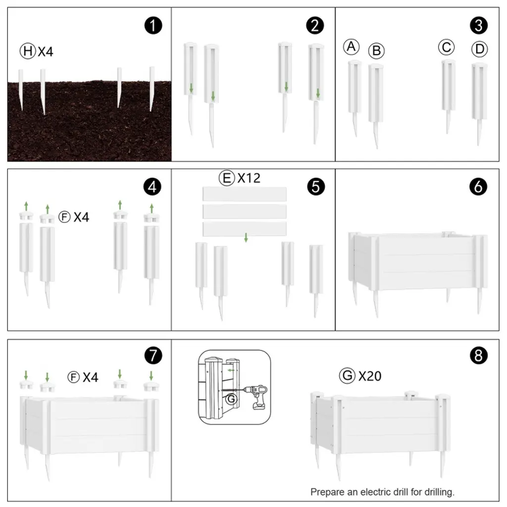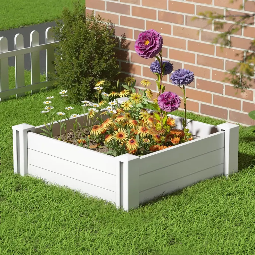 Pexfix Outdoor White Rectangular Vinyl Rail And Garden Fence Planter For Vegetables Flowers