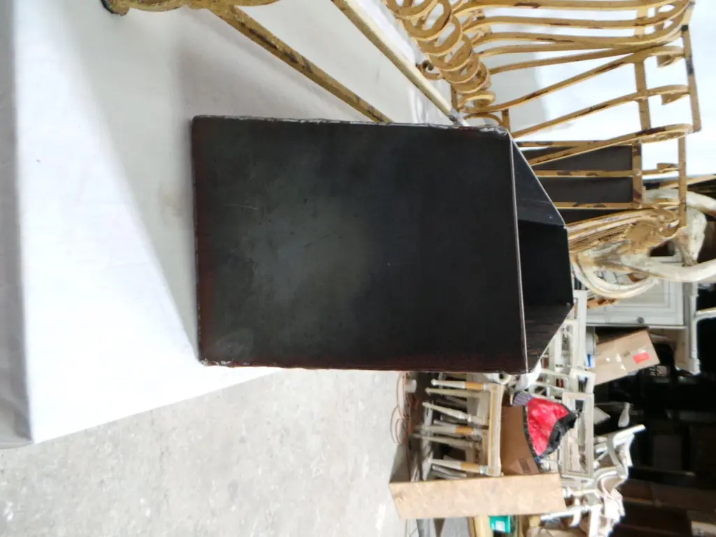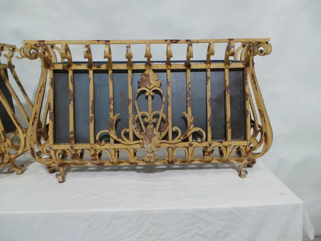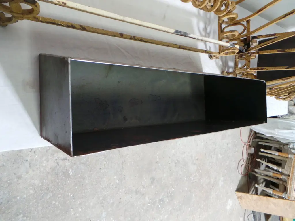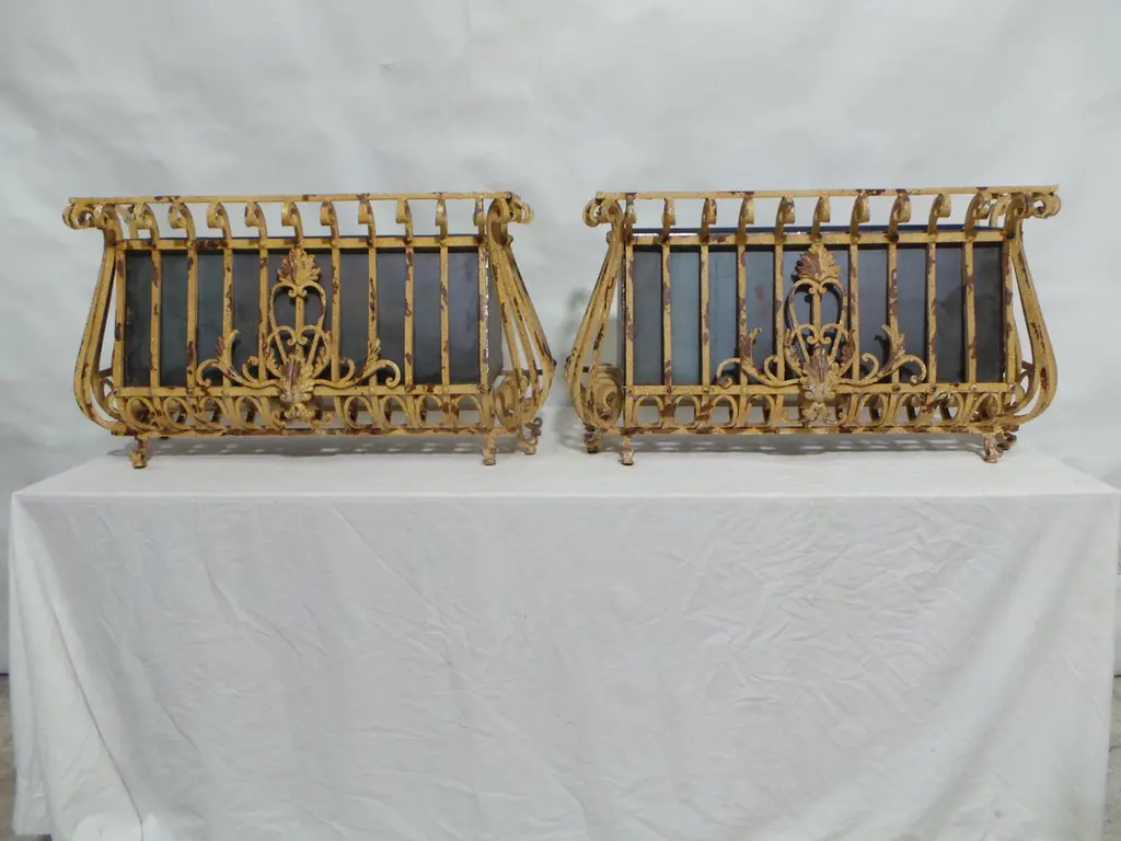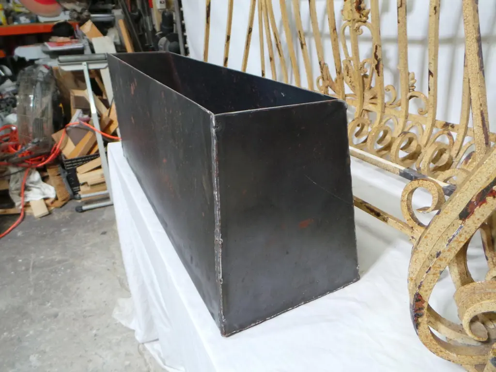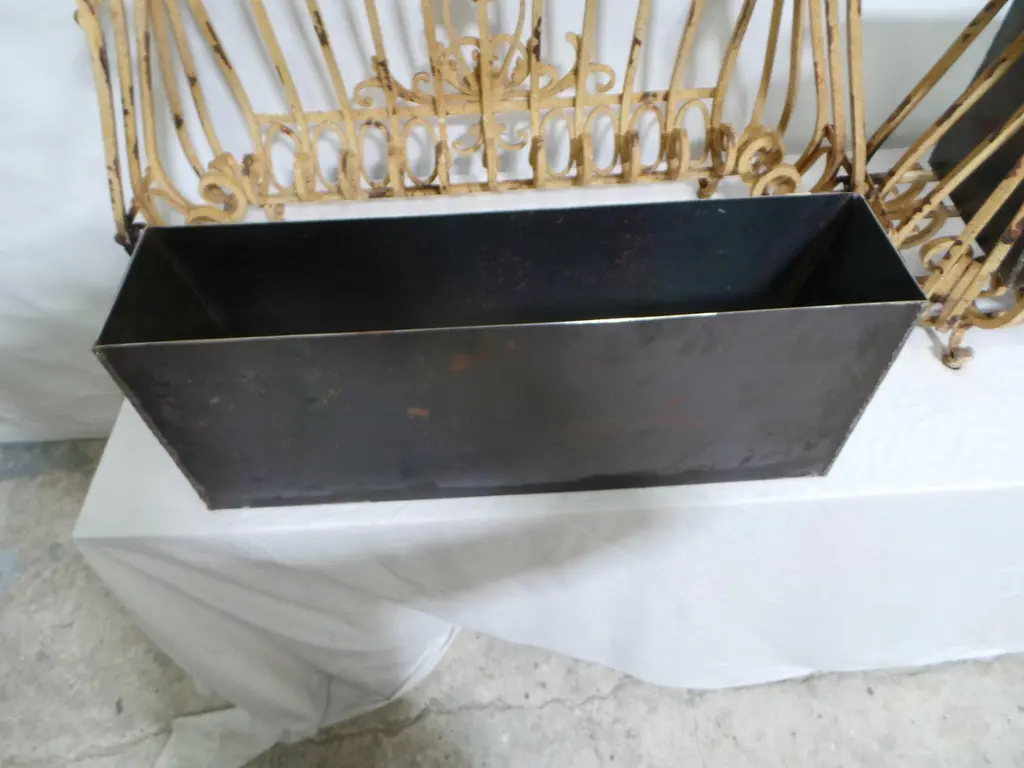 OK I found these at an estate auction in Sweden. I think they started there life as exterior window decoration as seen all over Europe. I thought they would be very cool as planters so I made Steel pots that slide right into them. Box measures 10.5h x 9d x 26w