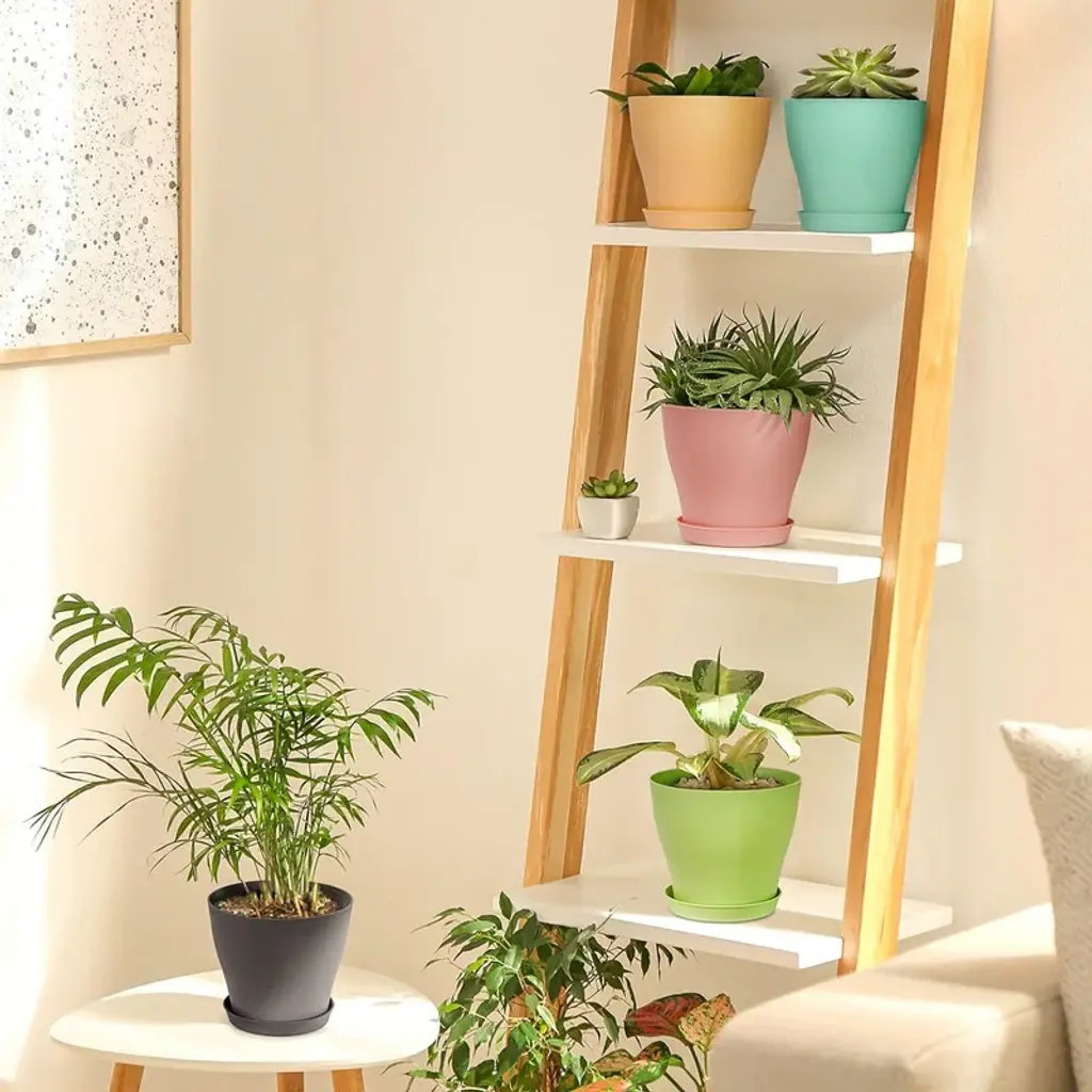 Unique Drainage Design:The Multi-Hole drainage design of this set of plastic plant pots can truly solve the problems faced by most plant lovers, the small holes arranged at the bottom can ensure that the drainage system will not be blocked, and will not cause soil leakage Most Valuable and Functional:Plant pot set include 15 pieces planting pots and 15 pieces matching tray, you can grow a variety of plants indoor or outdoors, such as orchid, snake plant, mint, parlor palm, devil's ivy, cactus, aloe Light Weight and Durable:These 6 inch nursery pots are made of high quality plastic, super lightweight, sturdy polypropylene make them unable to deform or break. Can be safely placed on the windowsill or repot your plant, without worrying about falling or breaking Modern Simple Design:Full white and matte finishing surface plant pot with streamline-type waist line shape bringing out a modern minimalistic styled and elegant modern visual representation for any home/office decor without any sense of violation Size of Planter Pots:Each plastic pot is 6'' in Opening Diameter, 4'' in Bottom Diameter, 5.3'' in Height. With a tray, these pots for plants are the best choice for growing indoor and outdoor small to medium-sized home/office plants