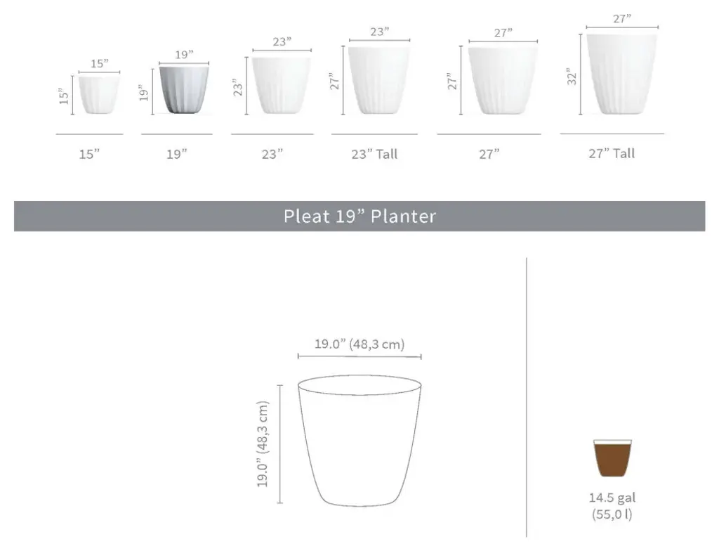 The Pleat modern indoor and outdoor planter offers a unique design that will enhance your plant display. These high-volume large planters are lightweight, yet highly durable and designed to last all seasons with its weather-resistant structure. Crescent Garden''s rotomolded planters are built with 100% recyclable polyethelene and come with 10-years limited warranty. With a variety of sizes and colors that can be used in clusters, rows or individually, the Pleat planters will enhance any indoor or outdoor space, residential or commercial.