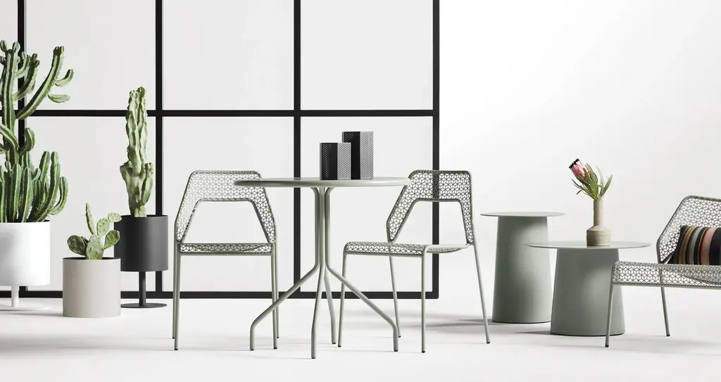 Green thumb or all thumbs, these planters improve the chance of your plants looking sharp even when you forget to water them. Powder-coated aluminum with a removable plastic drainage plug. Use inside or out.