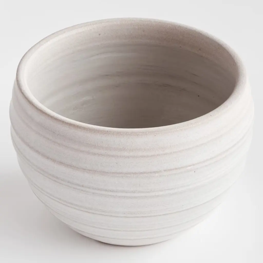 This hand-thrown pot has a weighty feel. Made with subtle ridges and a matte finish. The perfect little pot for your favorite herbs or colorful blooms. Tuck in a bookshelf or place on a windowsill to brighten the view.
