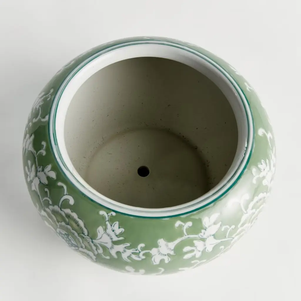 Plum & Post Imperial Lotus Planter Small - Green & White Chinoiserie