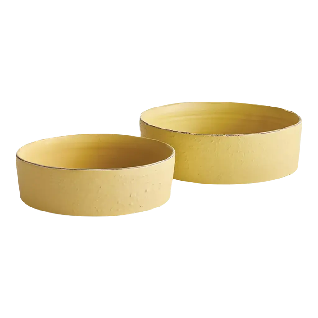 With a crackled glaze, uneven texture and basic form, this set of cachepots is simple and raw. In a refreshing buttercup yellow, like a freshly made ceramic piece direct from the hands of the artist.