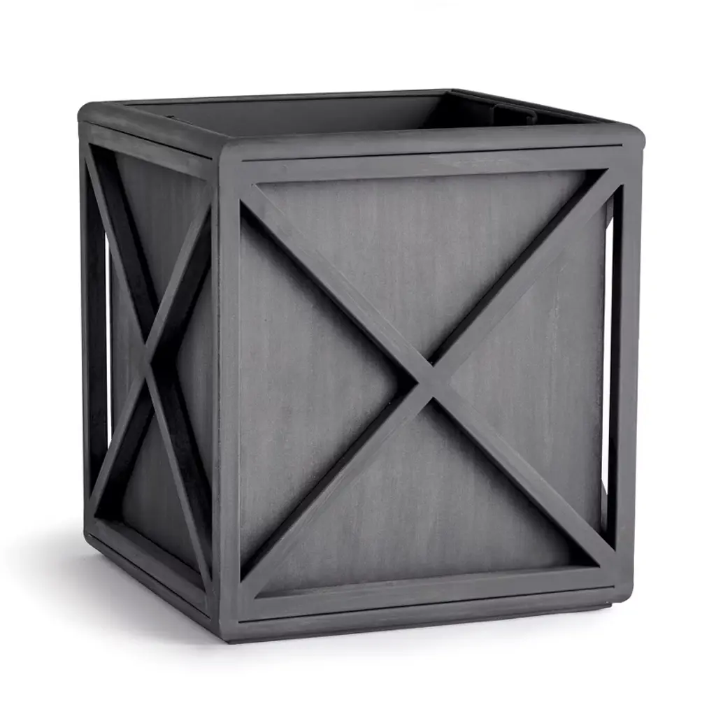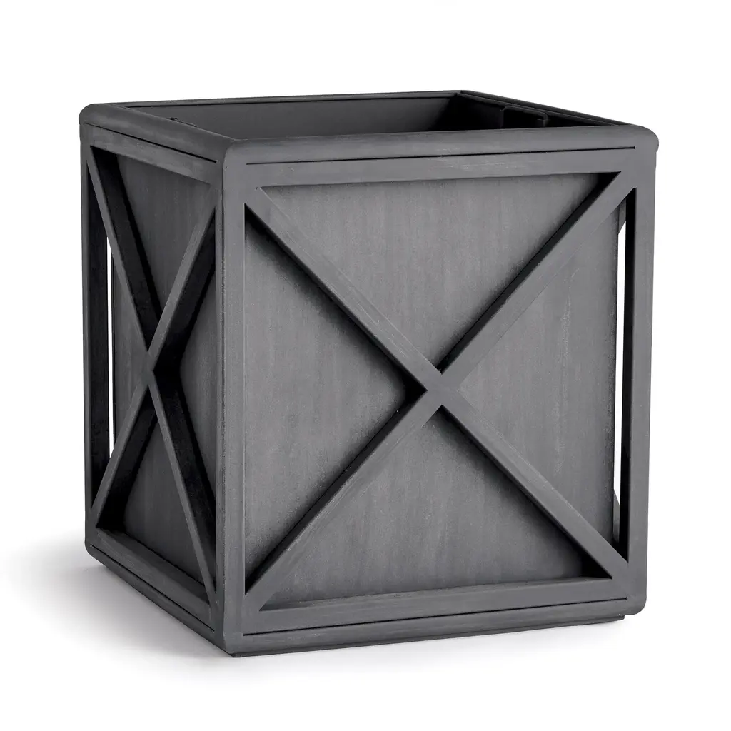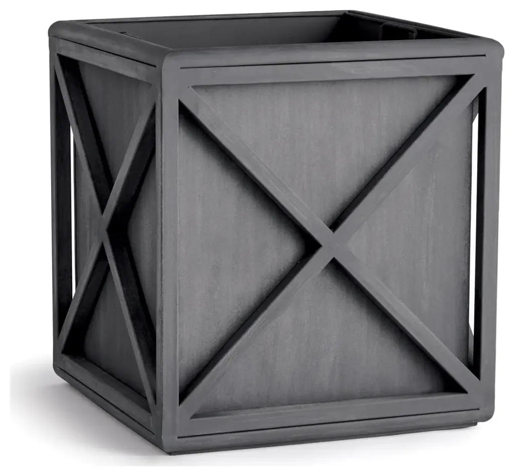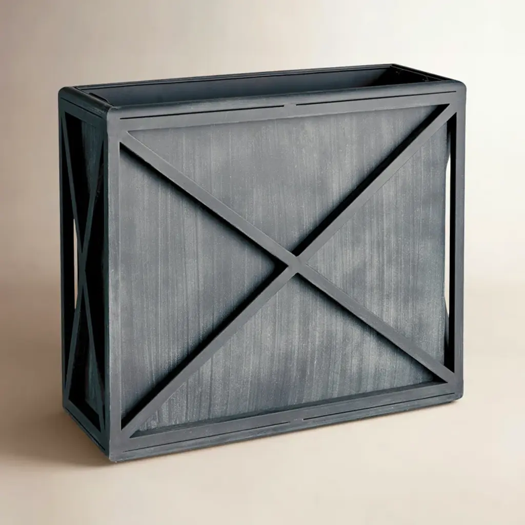 With a finish reminiscent of an aged European zinc, this gorgeous outdoor planter is made to maintain the original finish over time, even when exposed to the elements. Durable as well as beautiful. How brilliant! With it's classic X design and sleek curved corners, a stunning look for patio or porch