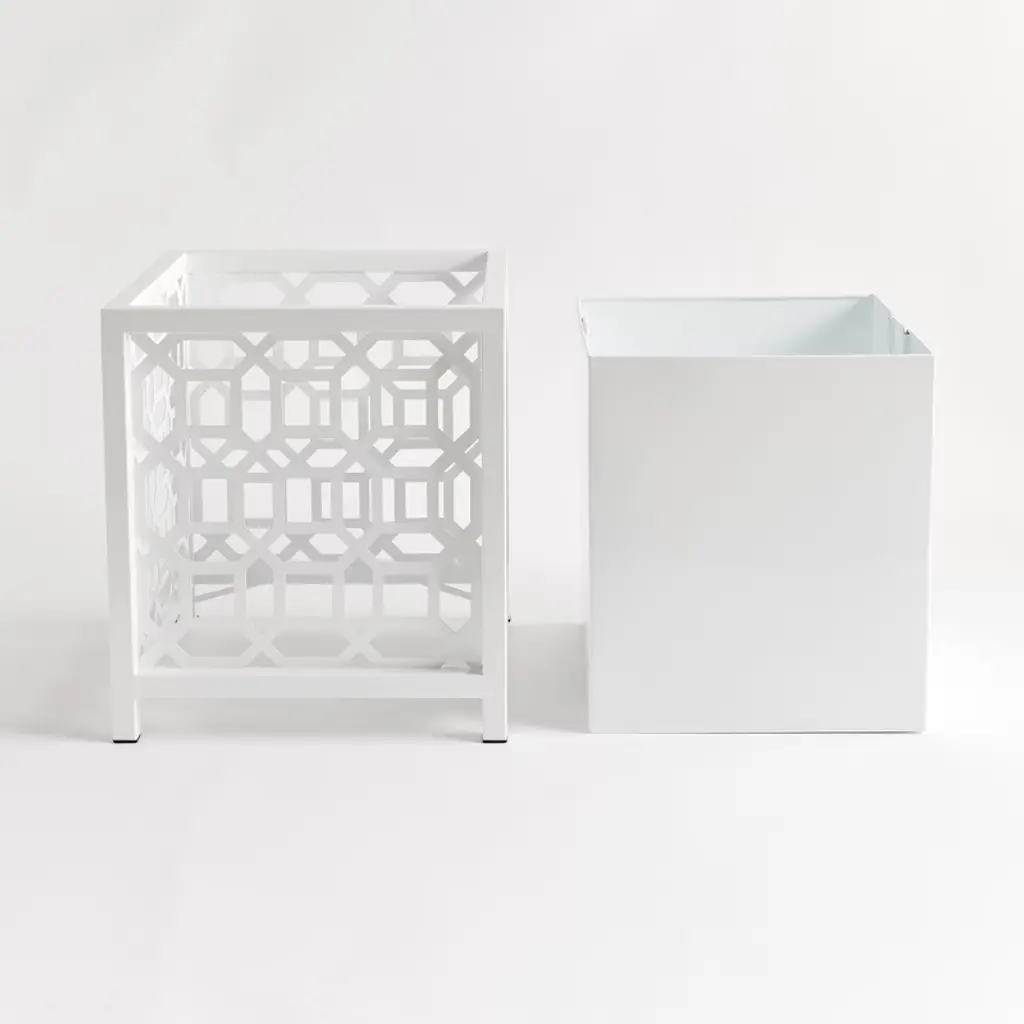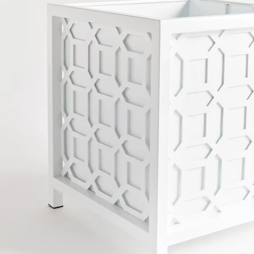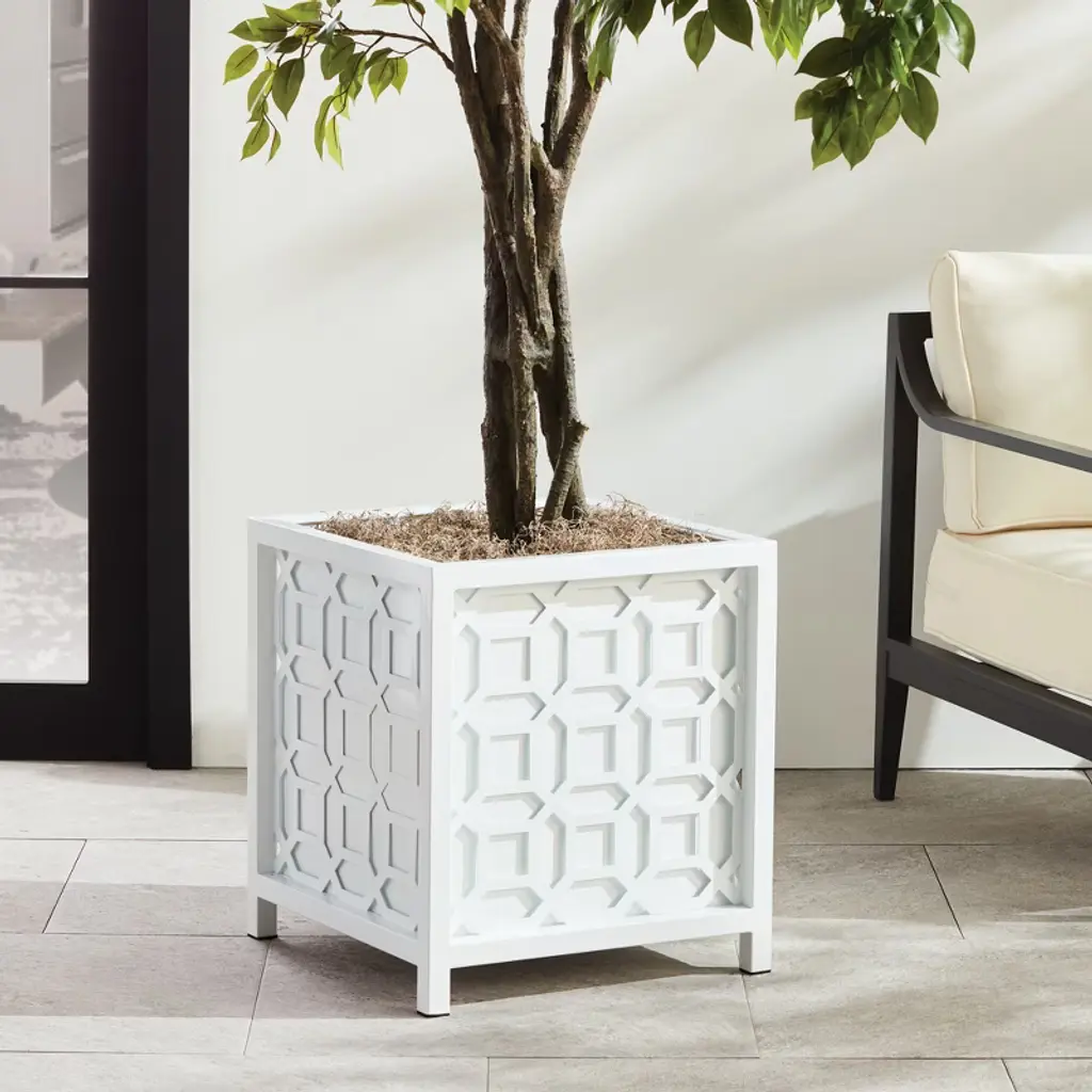 With a beautifully cut trellis pattern and recessed liners, this large-scale planter really brings the charm. Powder-coated for durability, it makes a standout planter in any traditional setting.