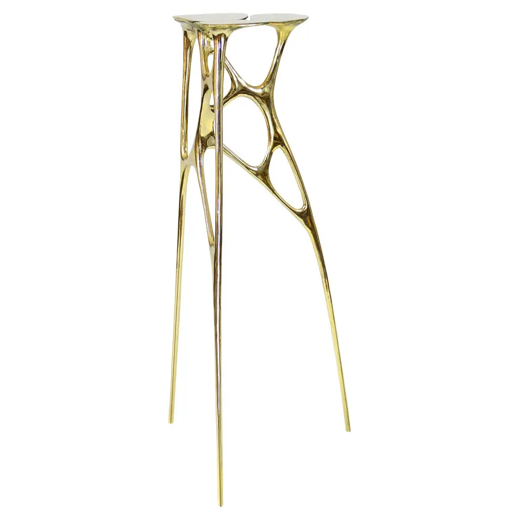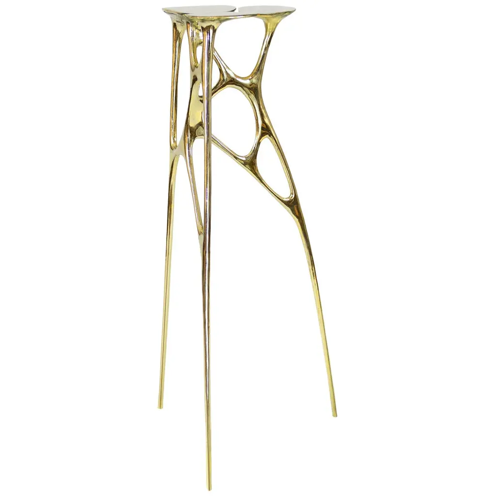 The Lotus Pedestal is a great accent piece in the interior. It is handmade by renowned Chinese artist Zhipeng Tan and can be customized in size and color.About the artist:Since graduating with an Industrial Design degree from the China Academy of Art in Hangzhou, Zhipeng Tan has focused on the ancient technique of lost-wax casting. Through this foundry process, rich in heritage and tradition, Tan explores his interest in organic forms. Often inspired by his environmental surroundings, such as water and plants, he explores anthropomorphic themes, as well. Though trained as an Industrial designer, he has become an accomplished self-taught sculptor, eagerly exploring the elastic and permeable boundaries between art and design and finding a harmonious fusion of sculpture and furniture, provocative objects of both beauty and utility.In spite of his rigorous training in computer modeling, Tan develops all of his concepts exclusively with hand drawing, preferring the direct connection to his work that sketching provides. As he likes to say, “Every line in the artwork is touched by me.” Most of his work is hand-sculpted in clay, and the final work is achieved through casting, hammering, welding and polishing. He has chosen brass as his preferred medium in part because of its connection to historical tradition, but most especially because of its warm color, rich luster and versatility. Though from his early work, one may sense the influence of Joan Miró, Henry Moore and Constantin Brancusi, and in his more recent pieces there is a nod to the Post-Pop sensibilities of Jeff Koons and Takashi Murakami, the work of Zhipeng Tan is thoroughly original, an expression of his exuberance and imagination. In all of his work, one may see an exploration of our fundamental humanity and a desire to discover worlds within worlds. From the 33 Step Chair, composed of a sculpture of an inverted human spine, to the Lotus series of tables and chairs, inspired by the structures of plants, to the TanTan series, depicting the characters from his imaginary utopian world of extraterrestrial adventurers, there is a deep and vital questing to connect the imaginary and the tangible worlds.