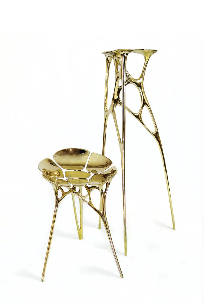 The Lotus pedestal is a great accent piece in the interior. It is handmade by renowned Chinese artist Zhipeng Tan and can be customized in size and color.About the artist:Since graduating with an Industrial Design degree from the China Academy of Art in Hangzhou, Zhipeng Tan has focused on the ancient technique of lost-wax casting. Through this foundry process, rich in heritage and tradition, Tan explores his interest in organic forms. Often inspired by his environmental surroundings, such as water and plants, he explores anthropomorphic themes, as well. Though trained as an Industrial designer, he has become an accomplished self-taught sculptor, eagerly exploring the elastic and permeable boundaries between art and design and finding a harmonious fusion of sculpture and furniture, provocative objects of both beauty and utility.In spite of his rigorous training in computer modeling, Tan develops all of his concepts exclusively with hand drawing, preferring the direct connection to his work that sketching provides. As he likes to say, “Every line in the artwork is touched by me.” Most of his work is hand-sculpted in clay, and the final work is achieved through casting, hammering, welding and polishing. He has chosen brass as his preferred medium in part because of its connection to historical tradition, but most especially because of its warm color, rich luster and versatility. Though from his early work, one may sense the influence of Joan Miró, Henry Moore and Constantin Brancusi, and in his more recent pieces there is a nod to the Post-Pop sensibilities of Jeff Koons and Takashi Murakami, the work of Zhipeng Tan is thoroughly original, an expression of his exuberance and imagination. In all of his work, one may see an exploration of our fundamental humanity and a desire to discover worlds within worlds. From the 33 Step Chair, composed of a sculpture of an inverted human spine, to the Lotus series of tables and chairs, inspired by the structures of plants, to the TanTan series, depicting the characters from his imaginary utopian world of extraterrestrial adventurers, there is a deep and vital questing to connect the imaginary and the tangible worlds.