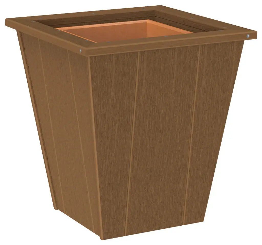 Available in three sizes, LuxCraft"™s Elite Planter features a tapered profile that dresses up any front porch or back patio. A removable liner with drainage openings makes this planter an easy way to give your outdoor area the finishing touch it deserves.Amish made in the USAMade from recycled plastic and 316-grade stainless steel hardwareHigh color stability for little fading over years of prolonged UV exposureDigital colors may vary slightly from actual product colors