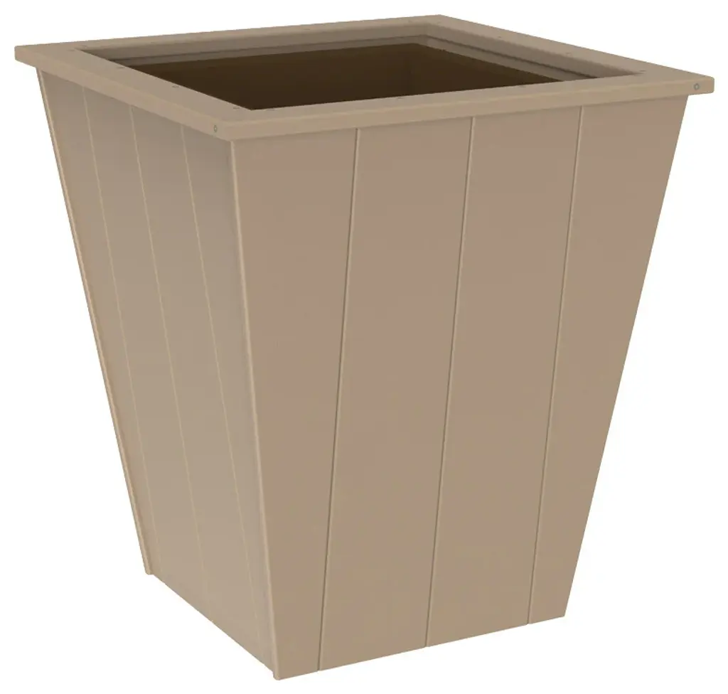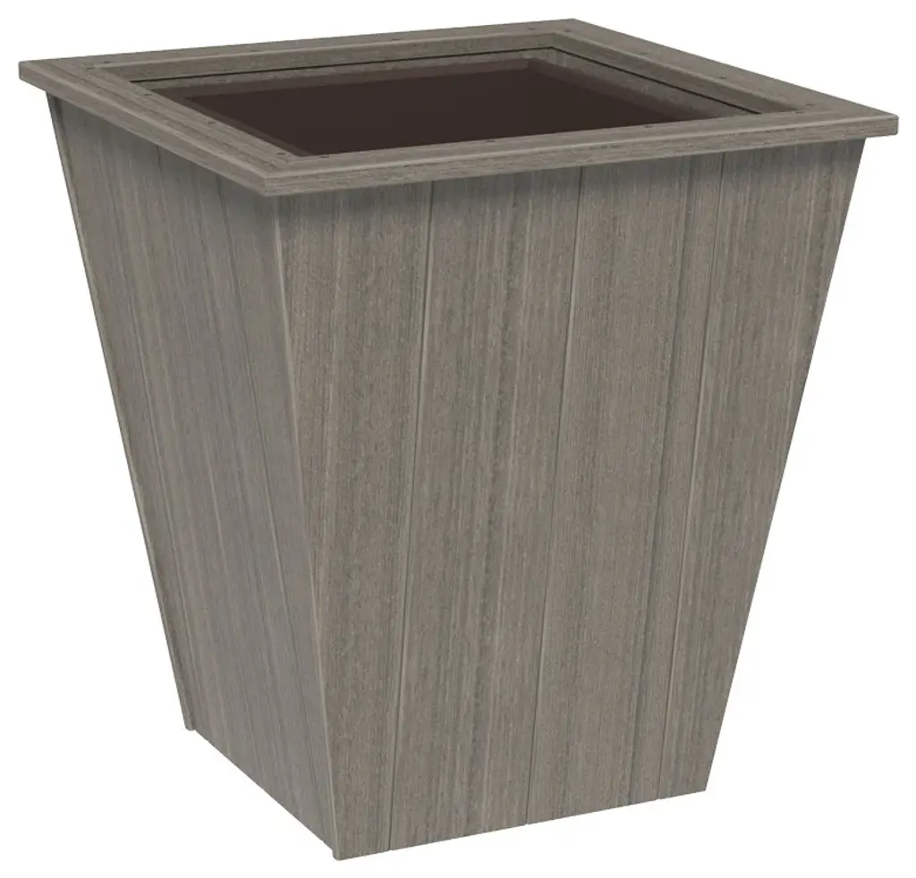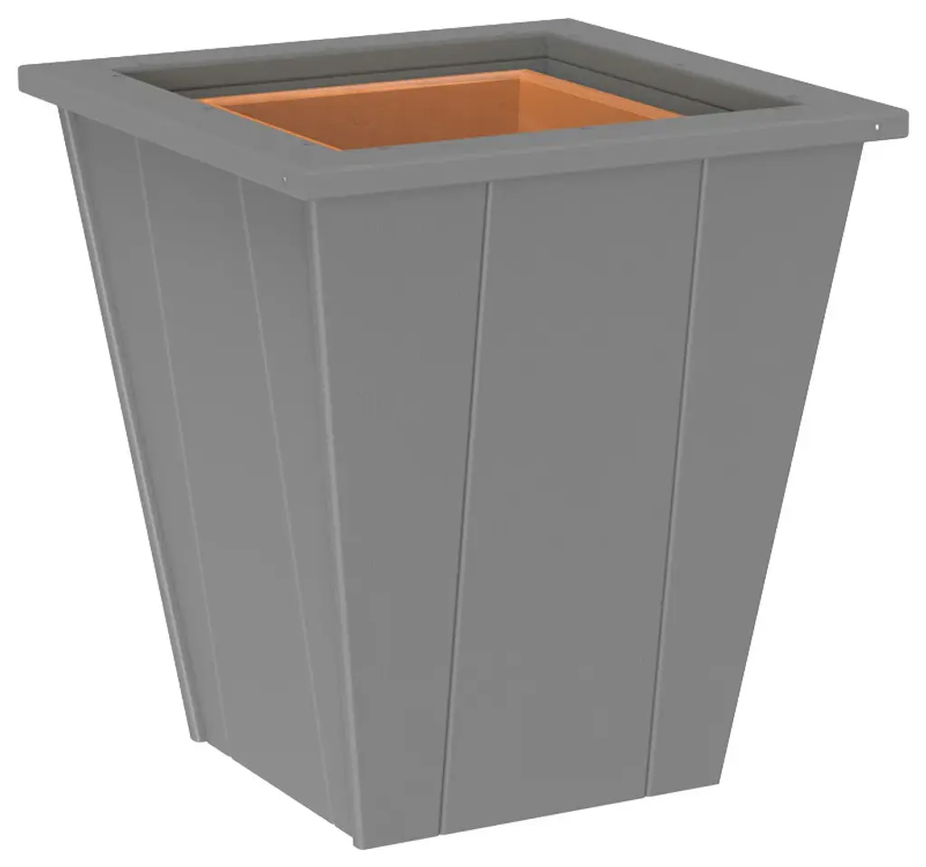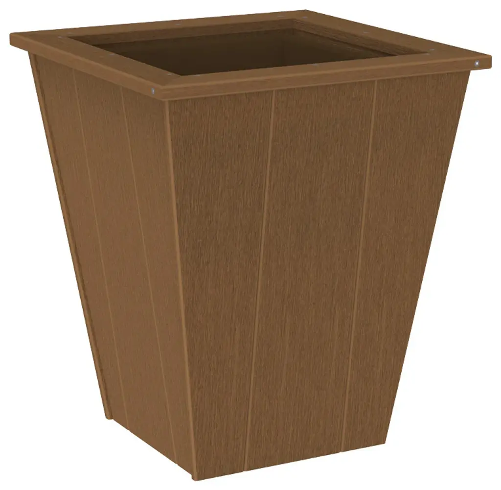 Available in three sizes, LuxCraft"™s Elite Planter features a tapered profile that dresses up any front porch or back patio. A removable liner with drainage openings makes this planter an easy way to give your outdoor area the finishing touch it deserves.Amish made in the USAMade from recycled plastic and 316-grade stainless steel hardwareHigh color stability for little fading over years of prolonged UV exposureDigital colors may vary slightly from actual product colors