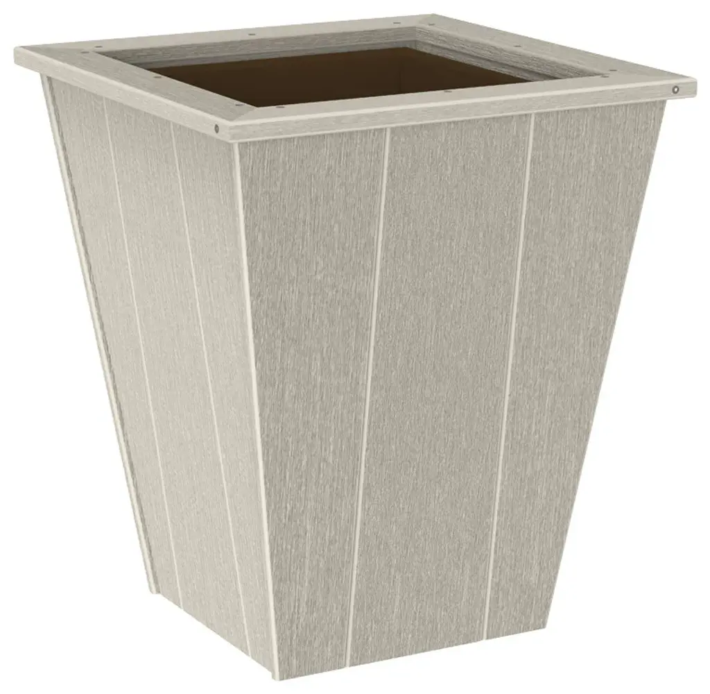 Available in three sizes, LuxCraft"™s Elite Planter features a tapered profile that dresses up any front porch or back patio. A removable liner with drainage openings makes this planter an easy way to give your outdoor area the finishing touch it deserves.Amish made in the USAMade from recycled plastic and 316-grade stainless steel hardwareHigh color stability for little fading over years of prolonged UV exposureDigital colors may vary slightly from actual product colors