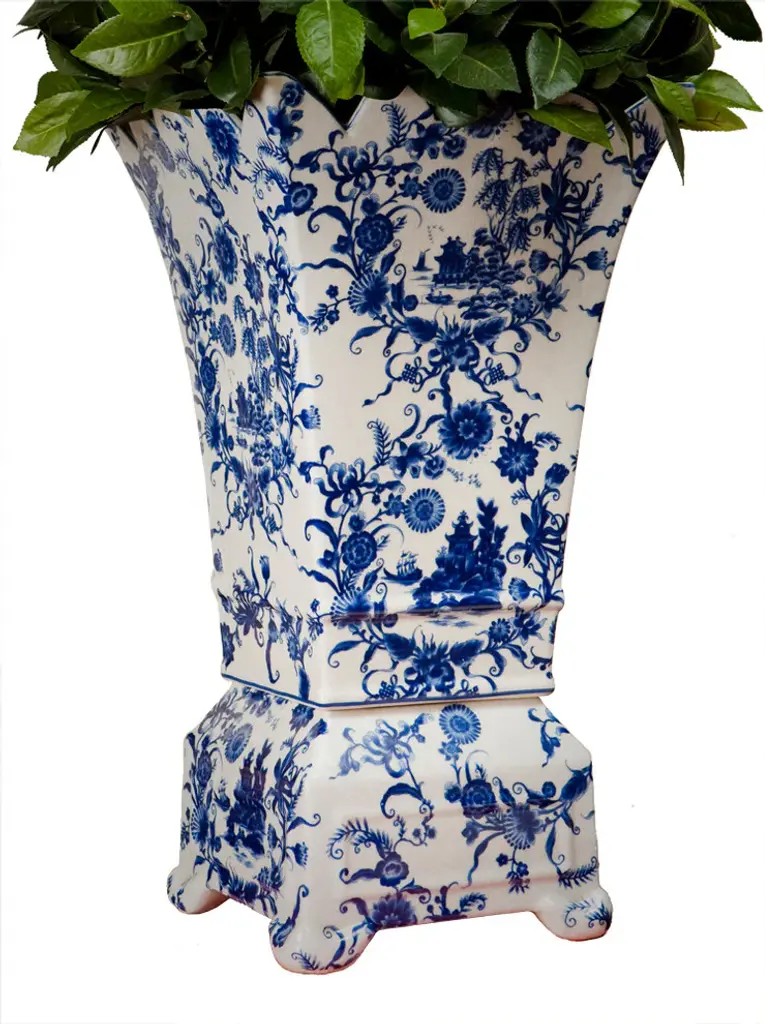 Porcelain Planter And Vase, Blue And White