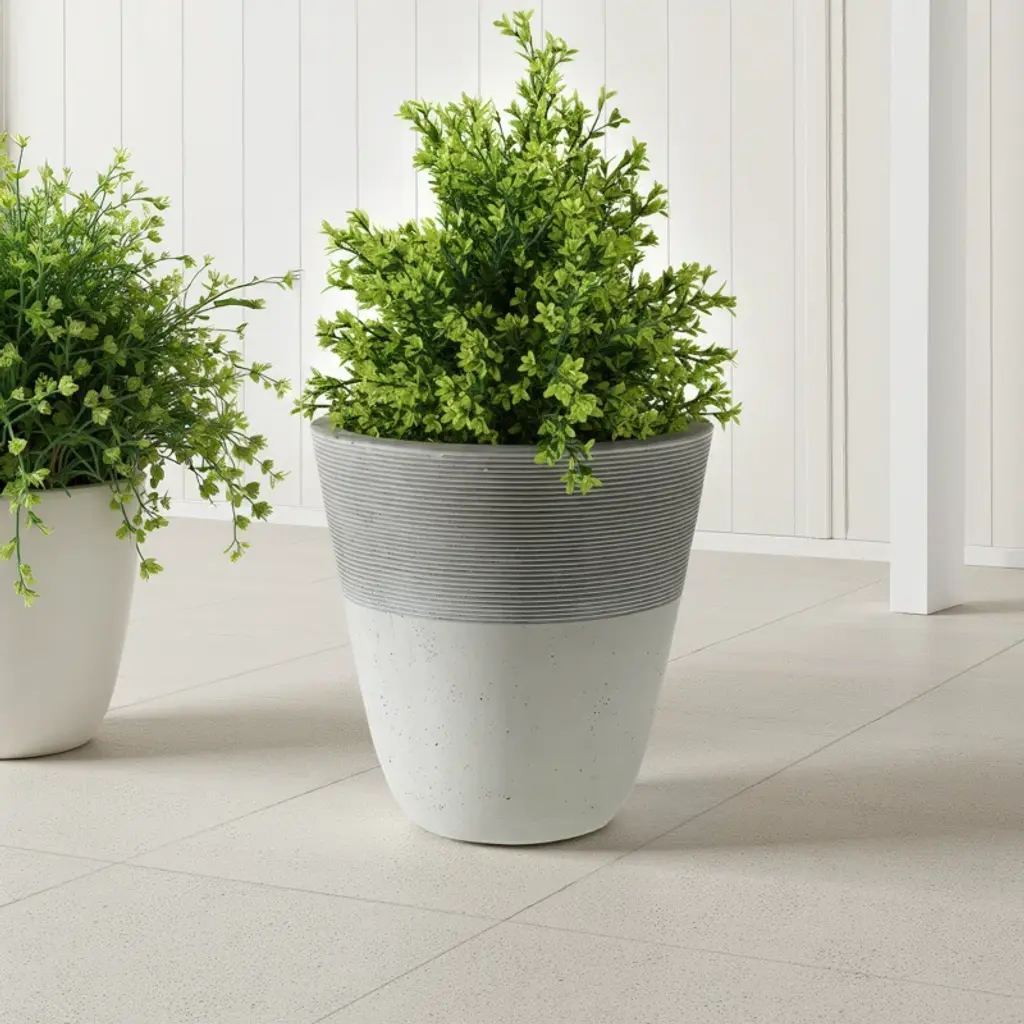 Elevate your greenery with this versatile pot planter, crafted from a mix of metal and concrete for a contemporary look. Designed for both indoor and outdoor use, it's a fantastic addition to your patio, balcony, or living room. The combination of materials offers a sleek and modern touch, while its neutral tones blend seamlessly with any decor. Just add your favorite plant and enjoy the fresh vibe it brings to your space. Keep in mind, it's best to move this planter indoors during extreme weather to maintain its appearance.