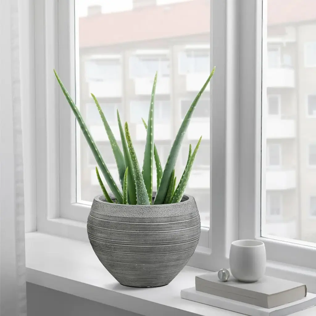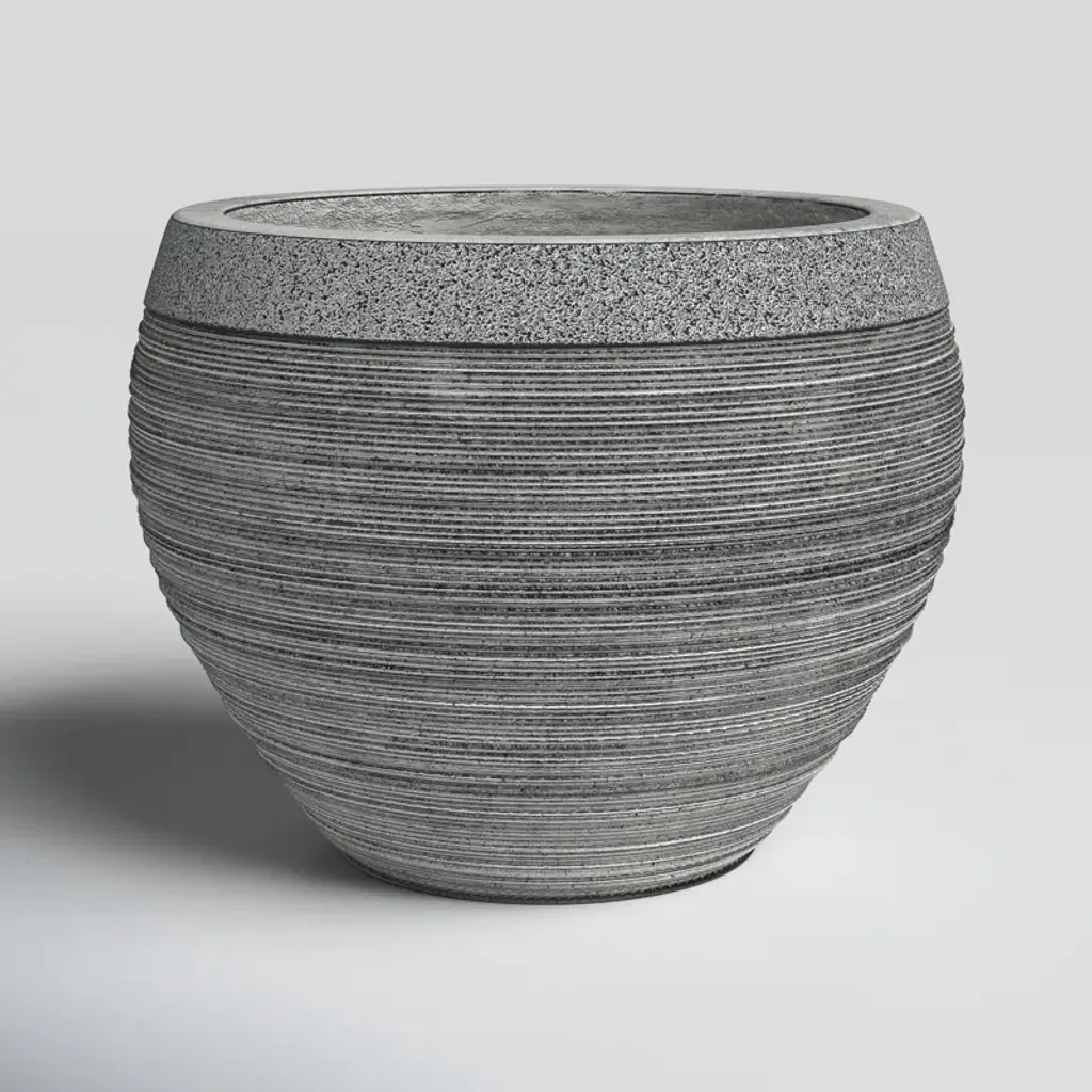 Growing greenery doesn't require a garden! Bring blooming botanicals and blossoming begonias to a small-scale porch or larger patio with this perfect pot planter. Taking on a curved silhouette, it offers plenty of room for planting inside. Designed to live outdoors, it is crafted from weather-resistant magnesium oxide that doesn't mind UV light beaming down or rainstorms rolling through. Plus, a neutral stone finish makes it an easy fit for just about any alfresco ensemble.