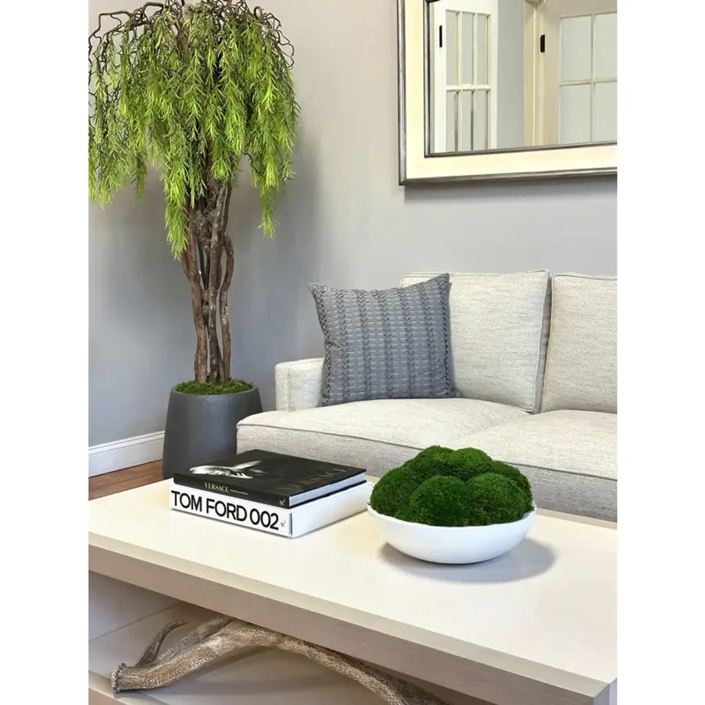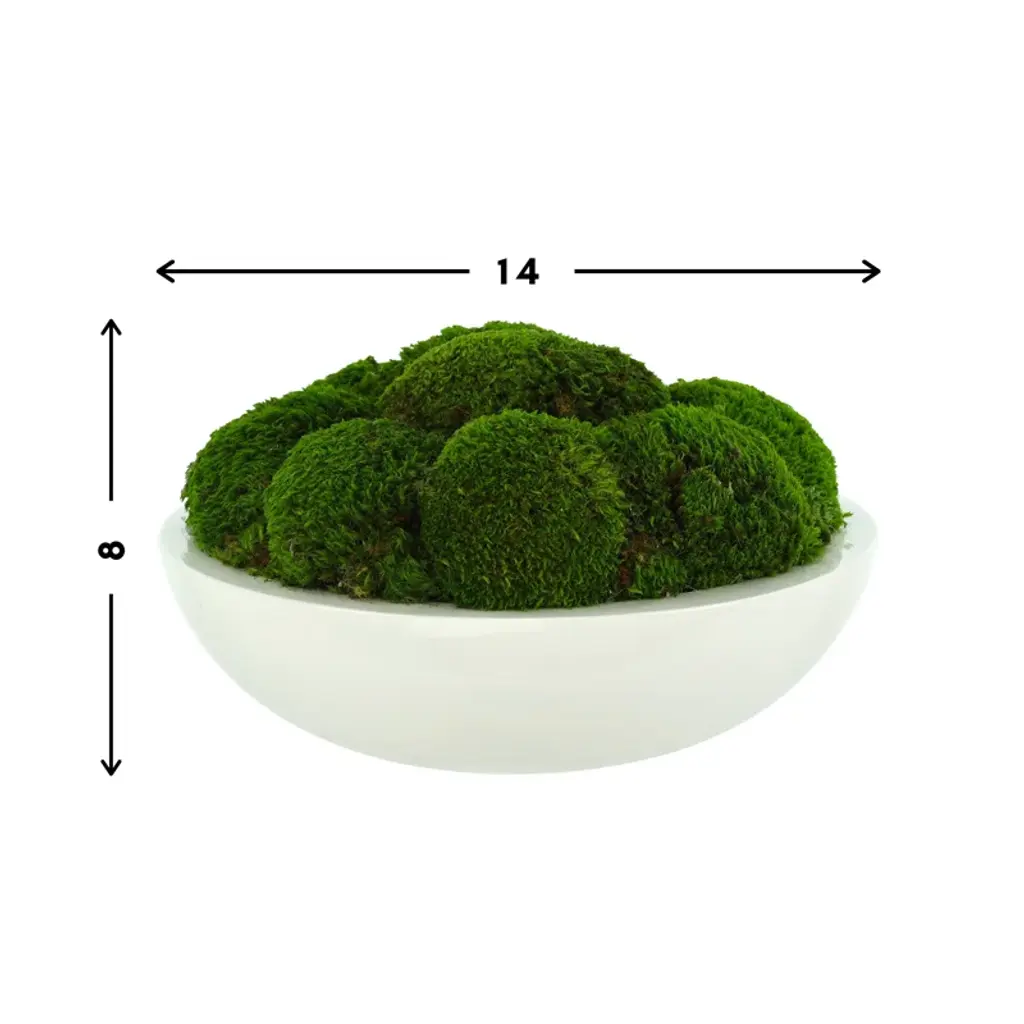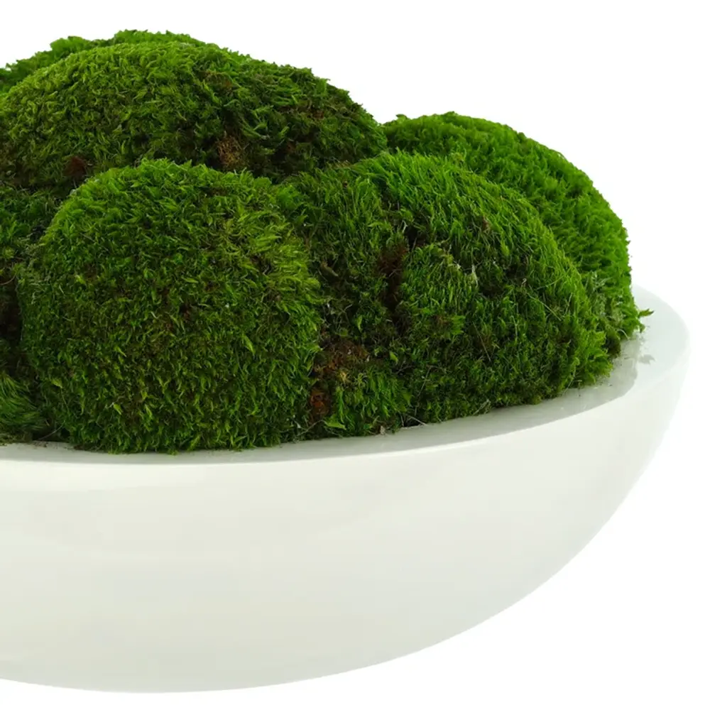 This lush green tabletop arrangement brings a touch of nature to your indoor space. Overflowing from a sleek white fiberstone bowl, the vibrant green moss creates a serene and organic vibe. Ideal for offices, bedrooms, dining rooms, and living areas, this preserved plant is sure to elevate your decor with a bright pop of green. The round fiberstone base adds a modern touch to the design, making it an eye-catching centerpiece on your dining room table or the console table in your entryway. Plus, this moss plant doesn't require water, so upkeep is a breeze.