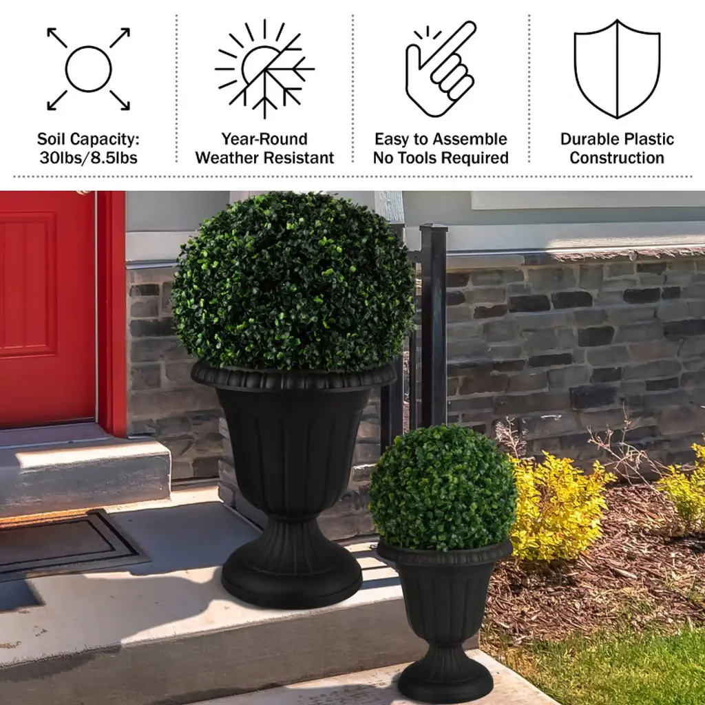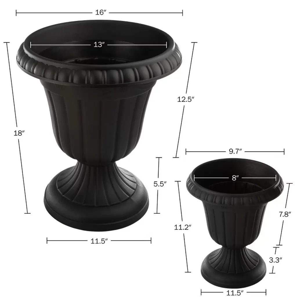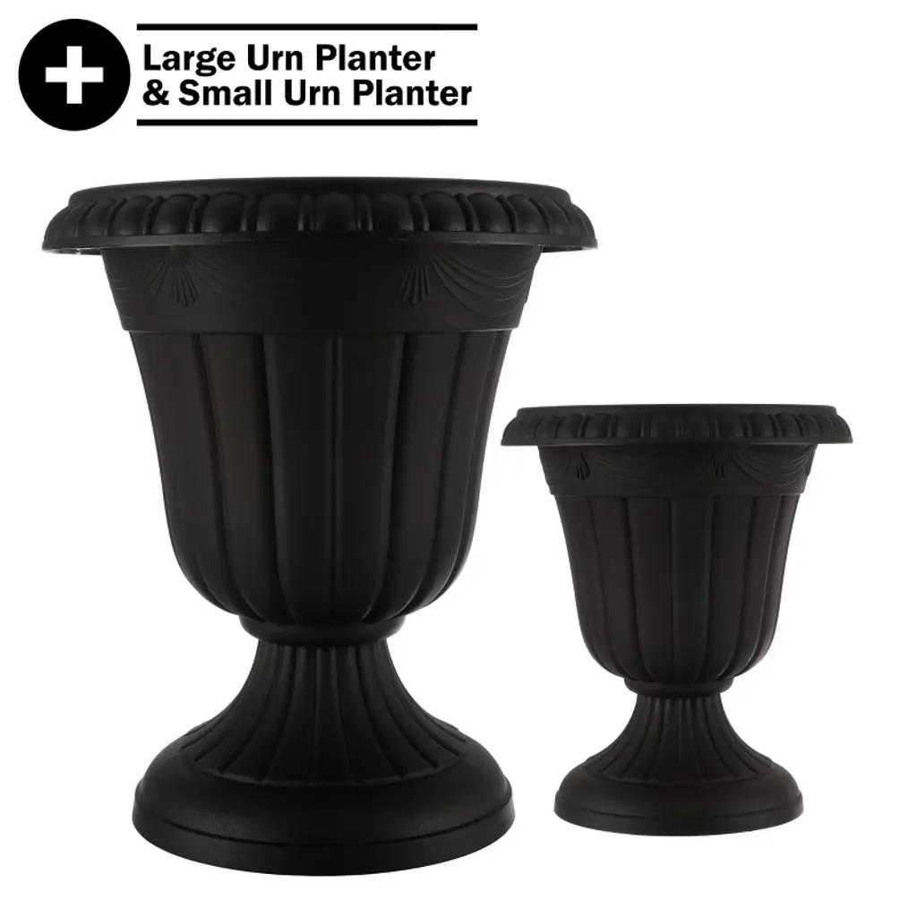 Pure Garden Large And Small Urn Planter 2Pk, Black