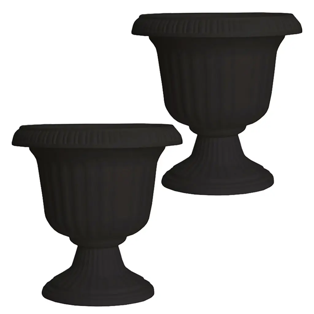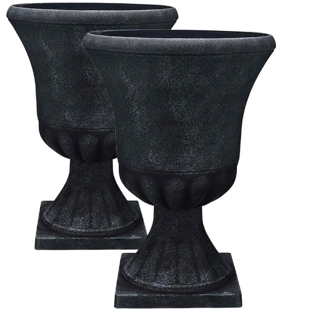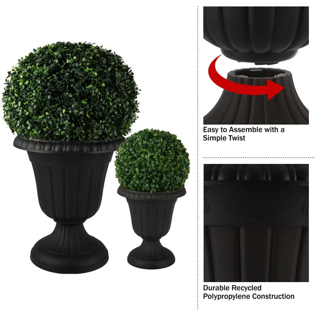 Pure Garden Large And Small Urn Planter 2Pk, Black