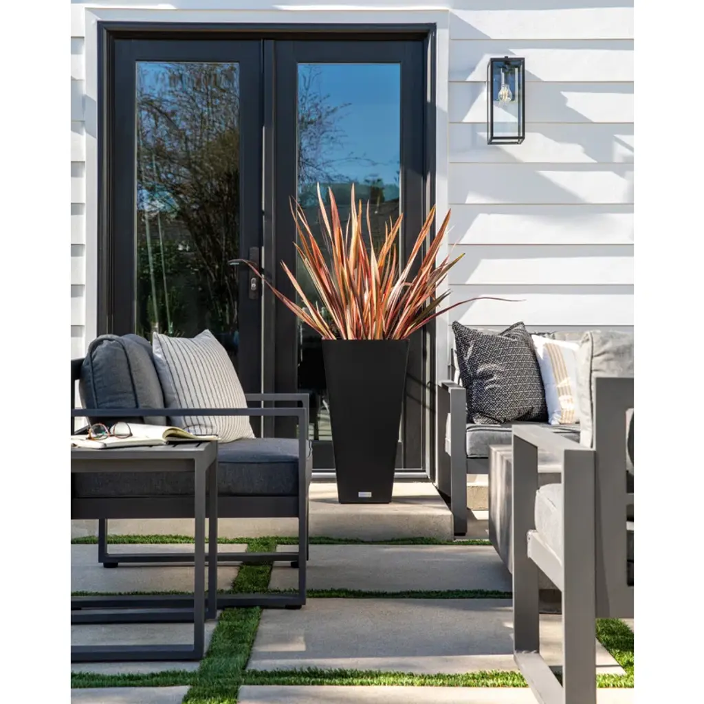 Lend a sleek touch to the patio or entryway with this lovely planter, showcasing a hued finish.