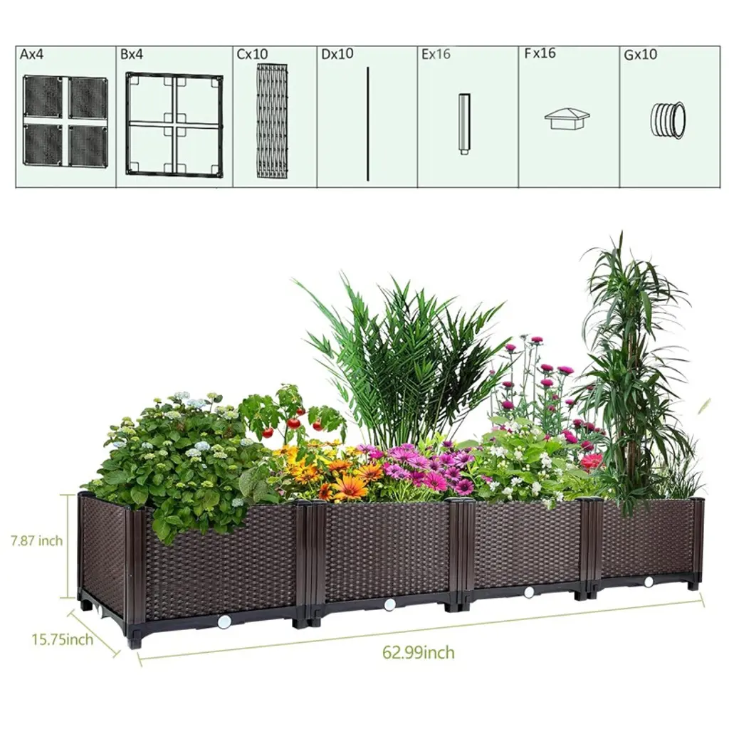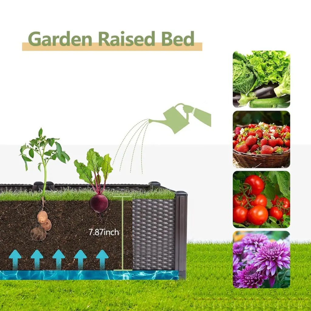 Raised Garden Bed Planter Box With Drainage & Water Reservoir, Indoor/outdoor Plastic Planter For Vegetables, Herbs, Flowers & Succulents