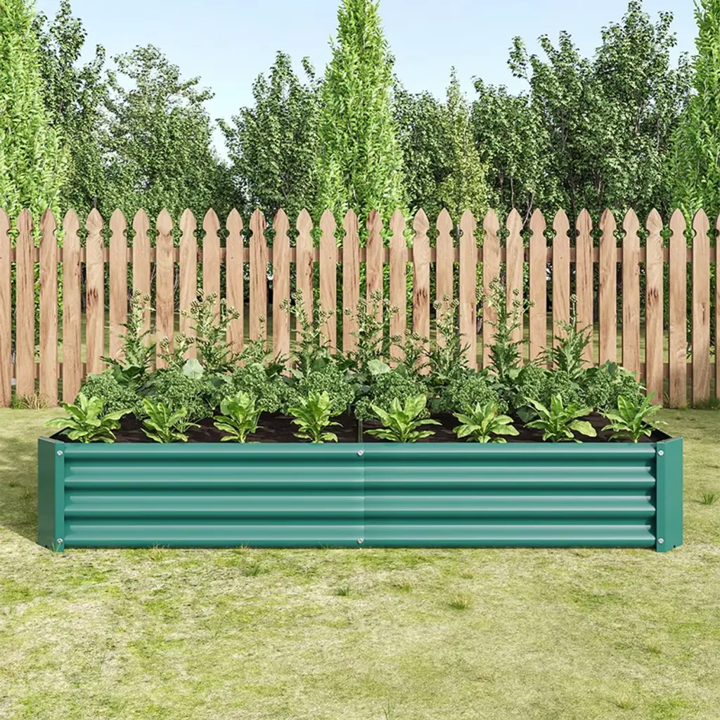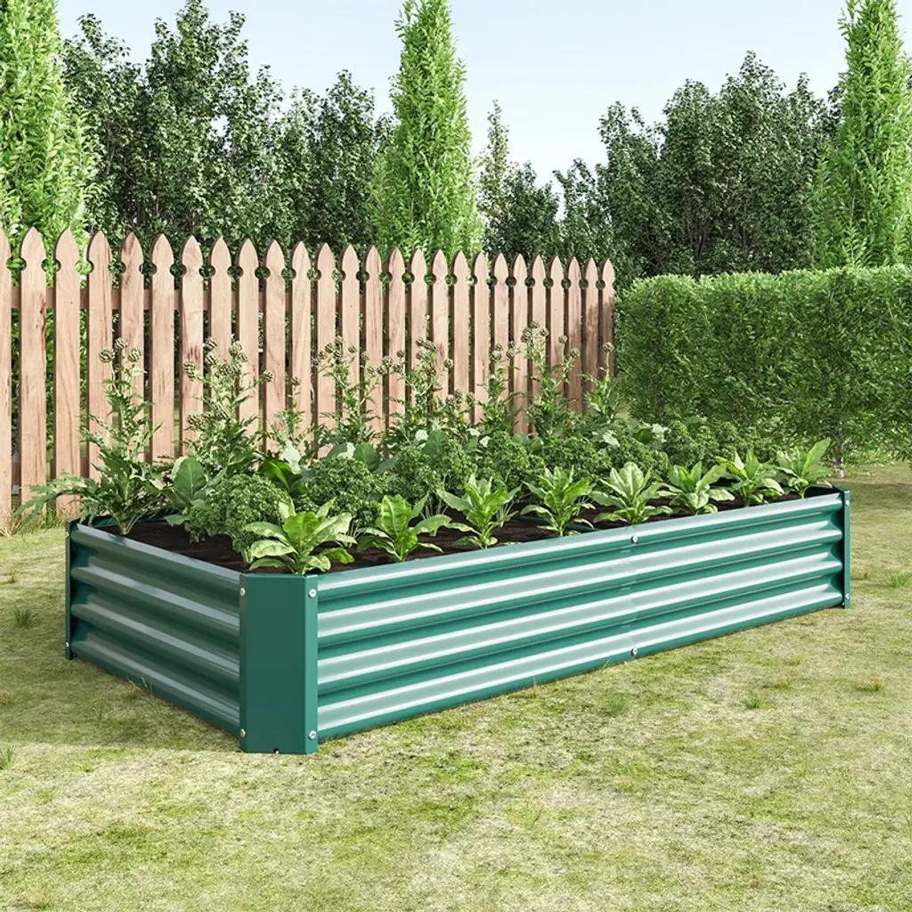Product Name: Raised Garden Bed Main Color: Black, Silver, Green Main Material: Metal Packing list: Garden Bed x 1 set Instructions x 1 Large Size:This corrugated iron garden bed is perfect for growing plants close together in the backyard or creating beautiful flower beds. 70.87"(L)x 35.83"(W) x 11.81'(H) Larger capacity to meet your planting needs, Larger capacity meets your planting needs and the square shape makes the garden more tidy. weighs 18 lbs. It has a soil capacity of 17 cu. ft. Worry-free purchasing:Committed to solving any problems with all products for you. If you have any questions, please feel free to contact us.