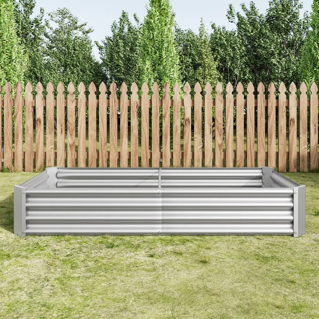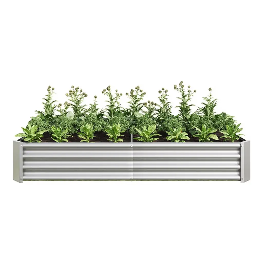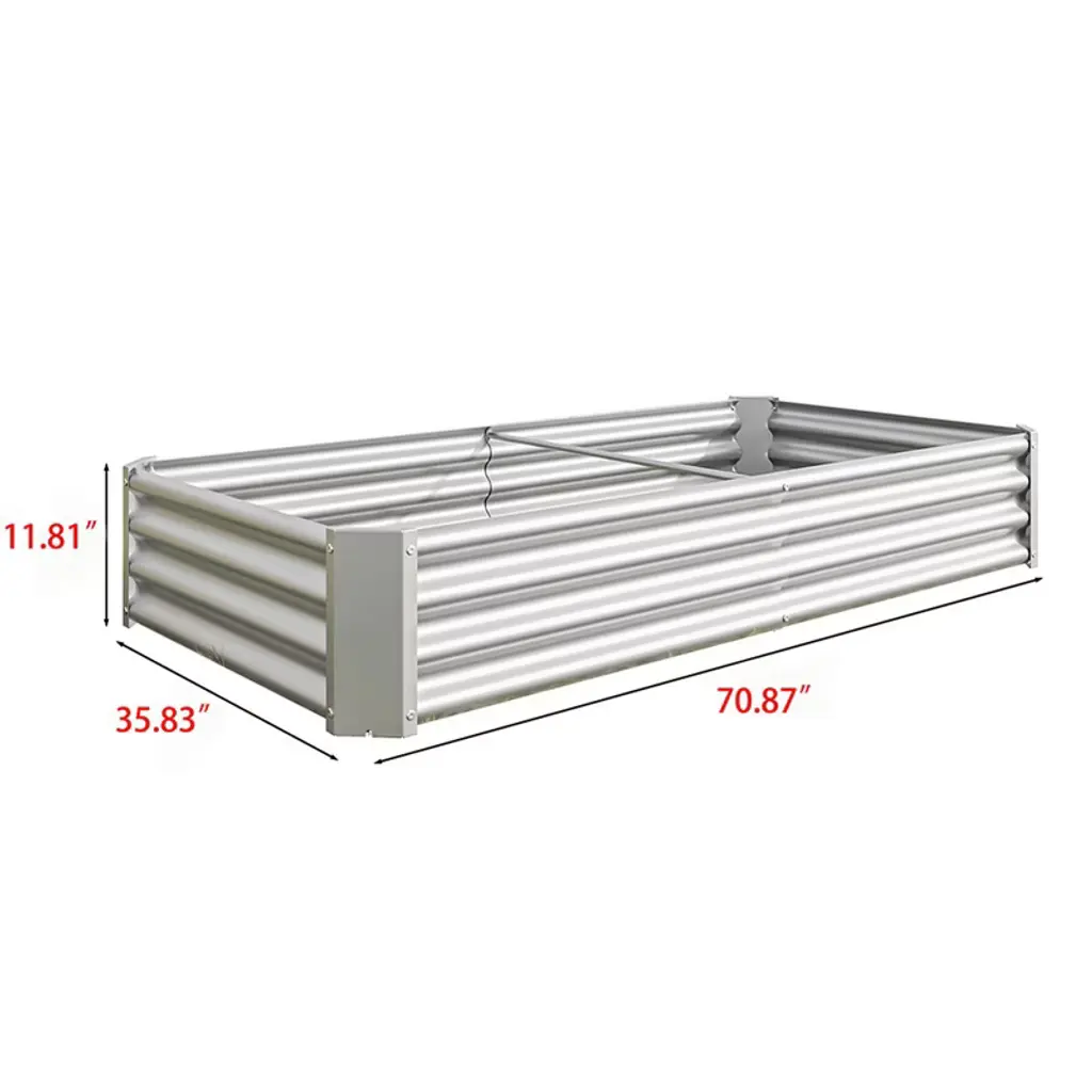 Product Name: Raised Garden Bed Main Color: Black, Silver, Green Main Material: Metal Packing list: Garden Bed x 1 set Instructions x 1 Large Size:This corrugated iron garden bed is perfect for growing plants close together in the backyard or creating beautiful flower beds. 70.87"(L)x 35.83"(W) x 11.81'(H) Larger capacity to meet your planting needs, Larger capacity meets your planting needs and the square shape makes the garden more tidy. weighs 18 lbs. It has a soil capacity of 17 cu. ft. Worry-free purchasing:Committed to solving any problems with all products for you. If you have any questions, please feel free to contact us.